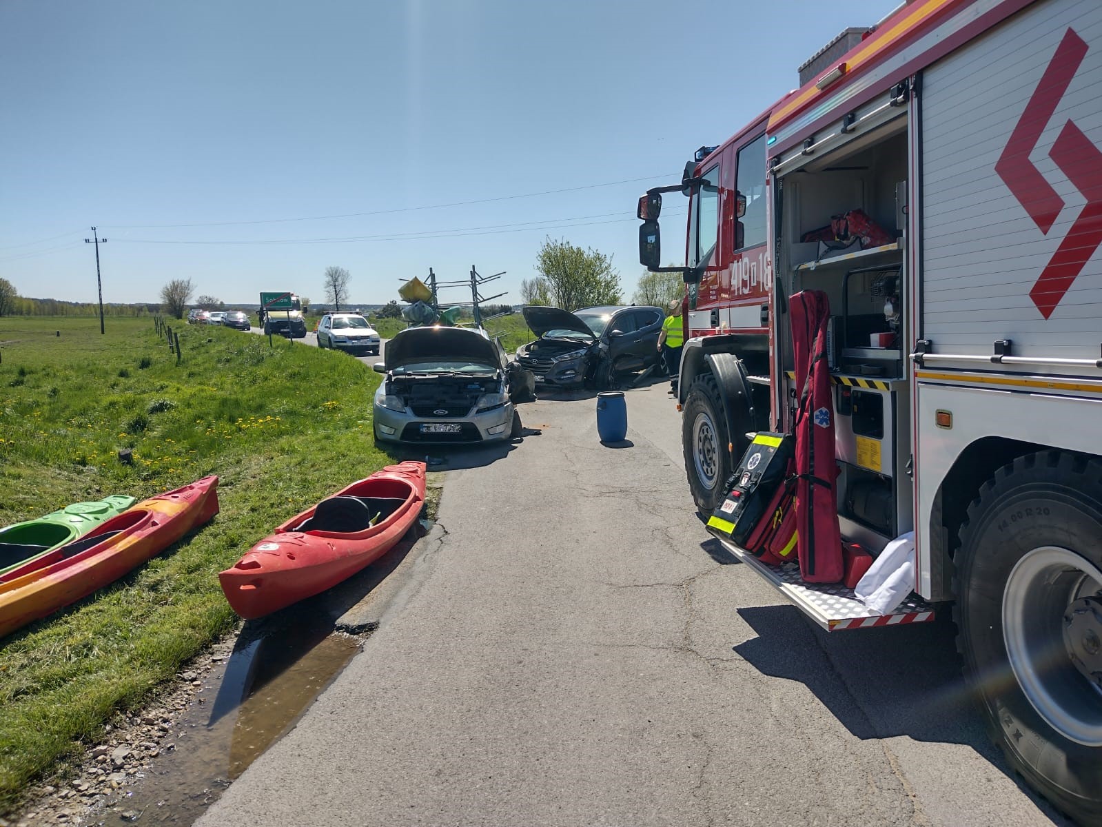 1 maja 2023 r. doszło do trzech groźnych zdarzeń komunikacyjnych. W pierwszym przypadku w miejscowości Sobków zderzyły się dwa pojazdy osobowe, w wyniku czego 1 osoba została poszkodowana i zaopatrzona medycznie przez przybyłych na miejsce strażaków. Drugie zdarzenie miało miejsce w miejscowości Świątniki, gdzie w wyniku wypadku na motocyklu poszkodowany został nastolatek. Strażacy zabezpieczyli lądowisko dla śmigłowca lotniczego pogotowia ratunkowego, który zabrał nastolatka do szpitala na dalsze badania. Trzecie zdarzenie miało miejsce w Brzegach (gmina Sobków), gdzie zderzyły się dwa samochody osobowe, którymi łącznie podróżowało 5 osób (w tym 2 dzieci). Strażacy po zabezpieczeniu miejsca zdarzenia niezwłocznie udzielili pomocy medycznej poszkodowanym. Po przybyciu na miejsce zdarzenia zespołów ratownictwa medycznego 3 osoby zostały zabrane do szpitali na dalsze badania.