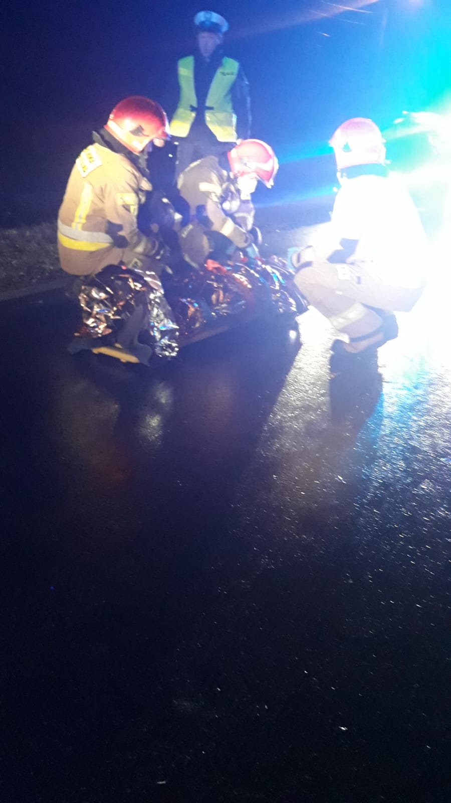 Działania jednostek ochrony przeciwpożarowej polegały na zabezpieczeniu i oświetleniu miejsca zdarzenia, następnie przystąpiono do odłączenia akumulatora w uszkodzonym pojeździe. Kierującemu, który opuścił pojazd przed przybyciem służb udzielono pomocy medycznej w postaci przeprowadzenia wstępnego badania urazowego, założenia kołnierza ortopedycznego, ułożenia poszkodowanego na desce ortopedycznej, zabezpieczenia przed utratą ciepła. Do czasu przybycia zespołu ratownictwa medycznego strażacy prowadzili wsparcie psychiczne i monitorowali stan poszkodowanego, który następnie został zabrany przez ZRM do szpitala na dalsze badania.