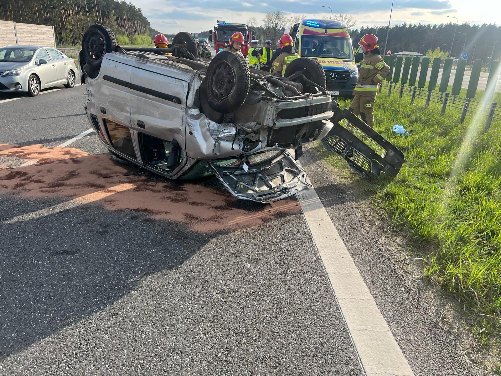 Dachowanie samochodu osobowego na trasie S7