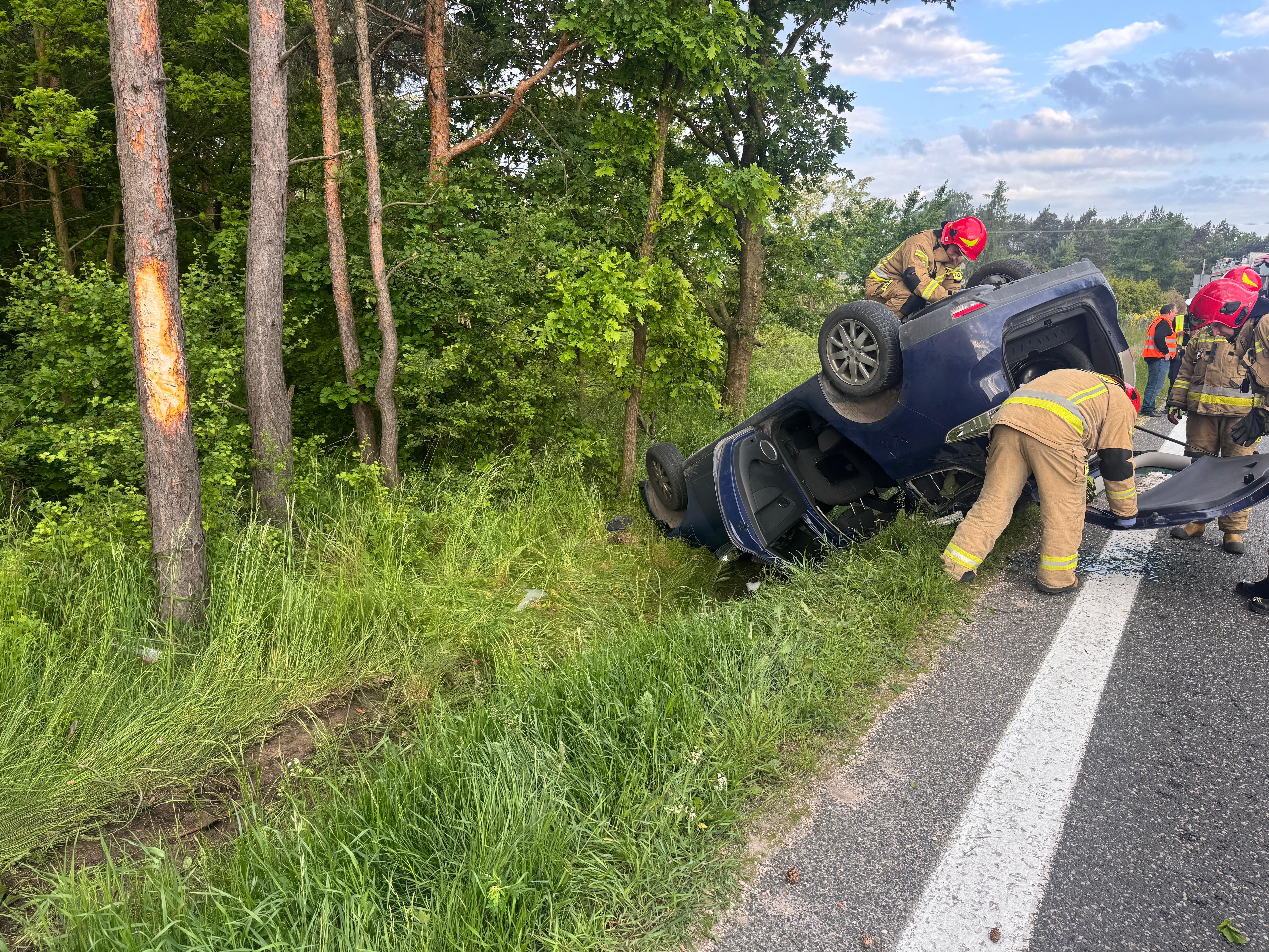 31 maja 2025 r. przed godziną 7:00 do Stanowiska Kierowania Komendanta Powiatowego Państwowej Straży Pożarnej w Jędrzejowie wpłynęło zgłoszenie o dachowaniu samochodu osobowego w miejscowości Jasionna, gmina Jędrzejów.