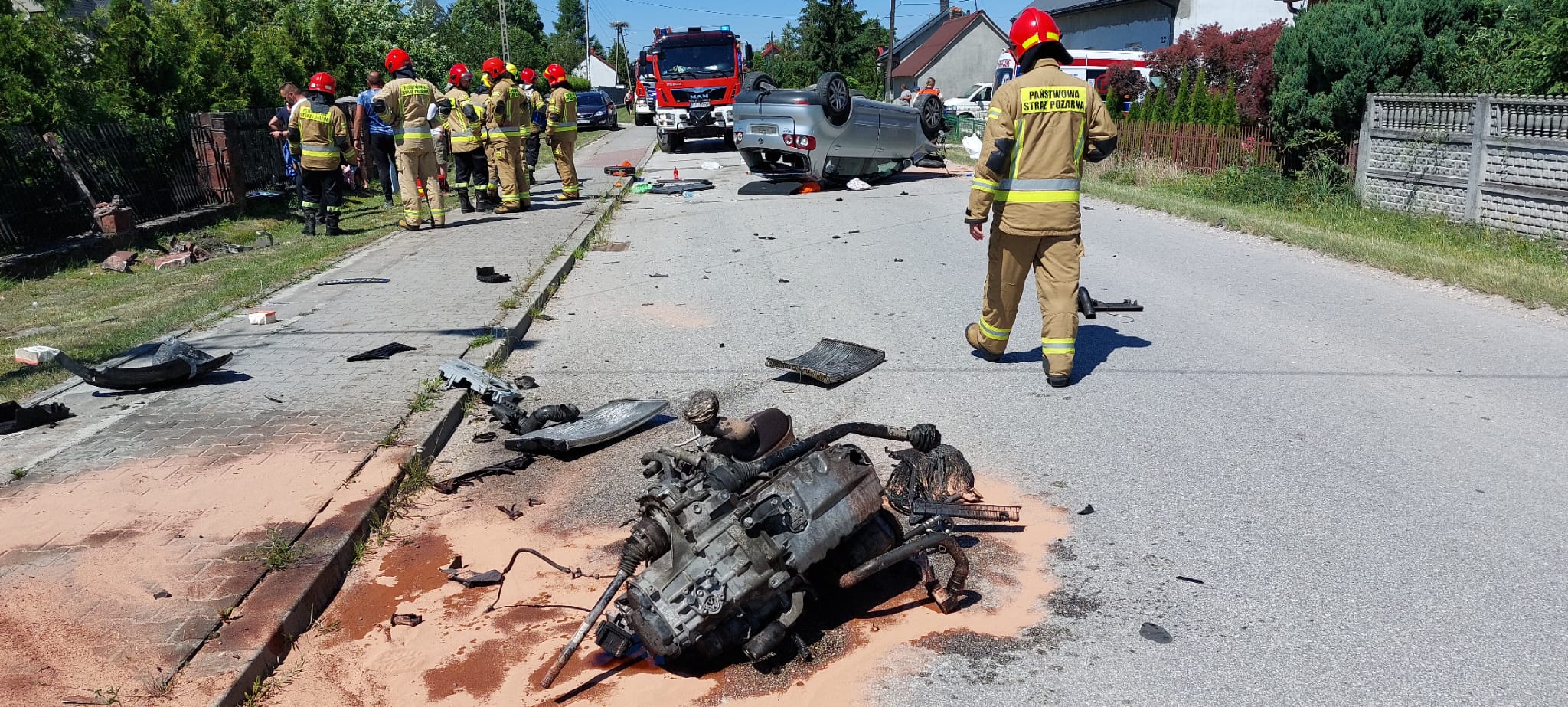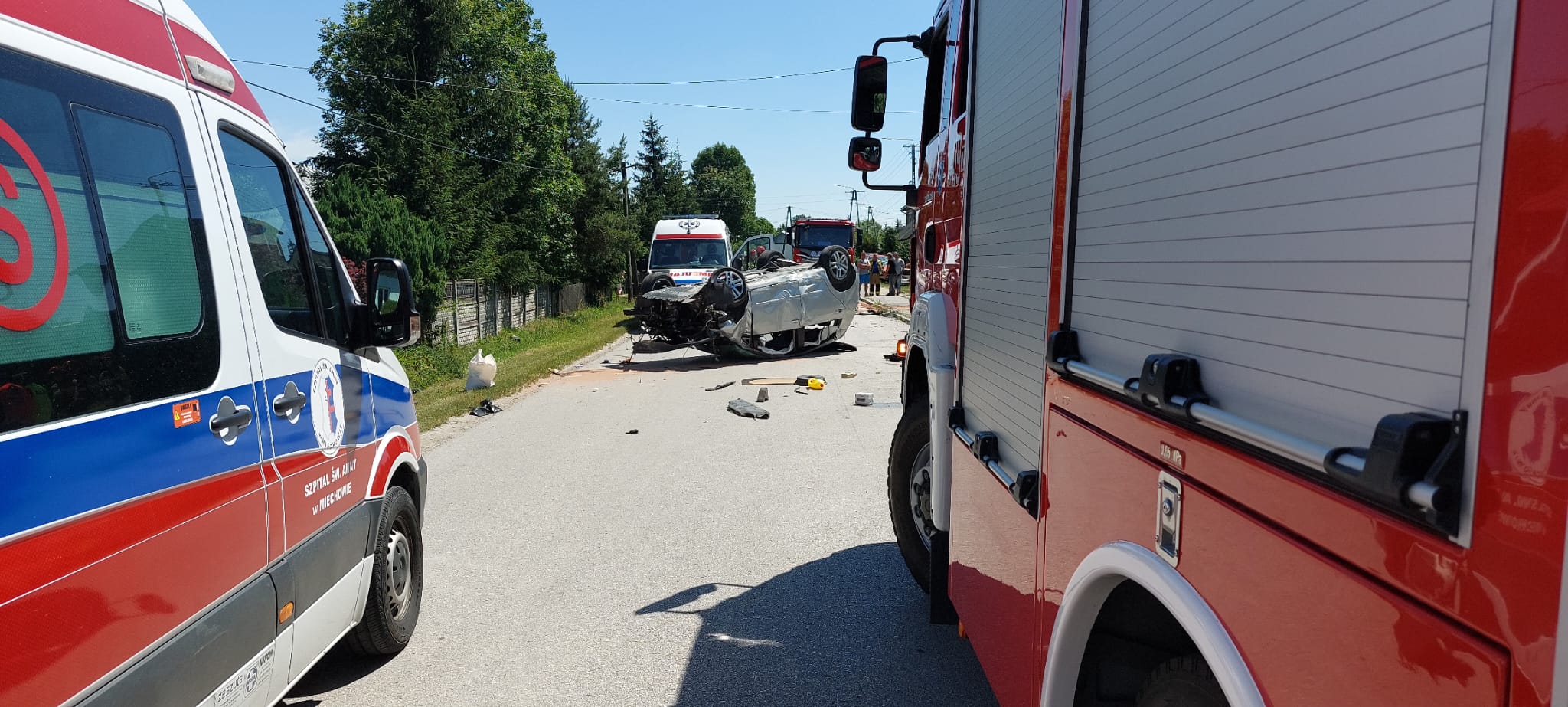 24 czerwca 2022 r. przed godziną 11:00 do Stanowiska Kierowania Komendanta Powiatowego Państwowej Straży Pożarnej w Jędrzejowie wpłynęło zgłoszenie o dachowaniu samochodu osobowego w miejscowości Piotrkowice, gmina Wodzisław. Po dojeździe na miejsce zdarzenia pierwszych zastępów straży pożarnej stwierdzono rozbity pojazd, który znajdował się na dachu i całkowicie blokował ruch w obu kierunkach drogi powiatowej. Samochodem podróżowały 2 osoby, w tym 7-letnie dziecko, które w chwili przybycia zastępów straży znajdowały się poza pojazdem.
