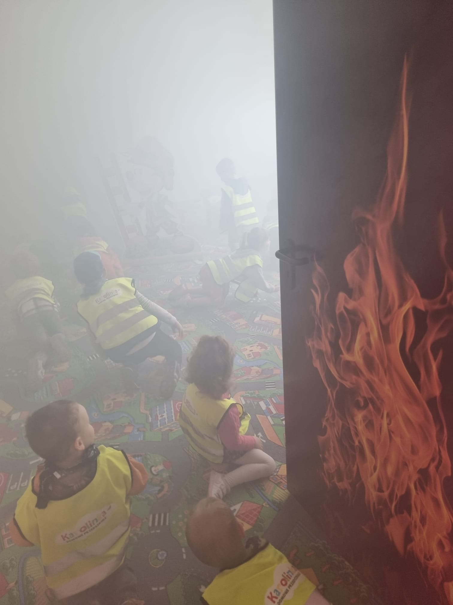 Podczas prowadzonych zajęć na sali edukacyjnej „Ognik” dzieci dowiedziały się w jakich okolicznościach najczęściej powstają pożary, poruszono także tematykę kształtowania prawidłowych zachowań i nawyków w sytuacji zagrożenia życia i zdrowia oraz promowano bezpieczną zabawę i wypoczynek. Przedszkolakom został także zaprezentowany mobilny symulator zagrożeń pożarowych, który niewątpliwe zadziałał na wyobraźnię i wzbudził duże zainteresowanie. Symulator umożliwił dynamiczną prezentację zagrożeń pożarowych i innych niebezpiecznych zdarzeń, jakie mogą mieć miejsce w domu jednorodzinnym.
