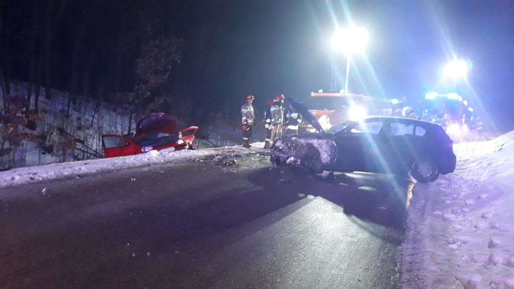 Działania jednostek ochrony przeciwpożarowej polegały na zabezpieczeniu i oświetleniu miejsca zdarzenia, następnie przystąpiono do odłączenia akumulatorów oraz zakręceniu zaworów w instalacji gazowej w uszkodzonych pojazdach. Równolegle wykonano dostęp do znajdującego się w jednym z pojazdów kierowcy przy użyciu narzędzi hydraulicznych. Następnie wydobyto go przy użyciu deski ortopedycznej i zaopatrzono medycznie. Drugiemu kierowcy założono kołnierz ortopedyczny, zabezpieczono przed utratą ciepła oraz prowadzono wsparcie psychiczne. Przybyłe na miejsce zdarzenia zespoły ratownictwa medycznego zabrały poszkodowanych do szpitala na dalsze badania.