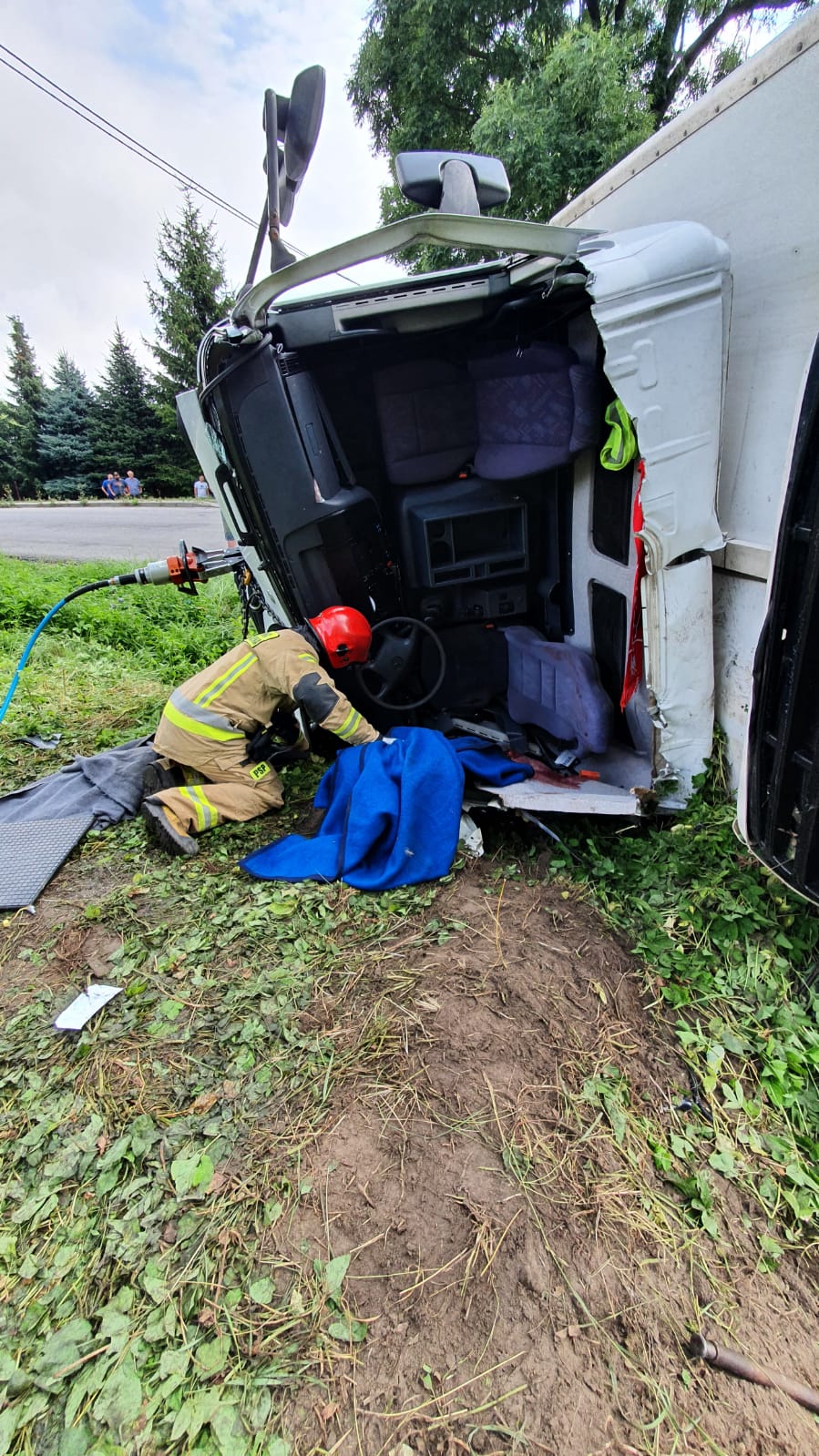 26 lipca 2021 r. po godzinie 8:00 do Stanowiska Kierowania Komendanta Powiatowego Państwowej Straży Pożarnej w Jędrzejowie wpłynęło zgłoszenie o wypadku drogowym w miejscowości Słupia Jędrzejowska. Po dojeździe na miejsce zdarzenia pierwszych zastępów straży pożarnej stwierdzono przewrócony samochód ciężarowy, który dodatkowo uszkodził słup energetyczny.