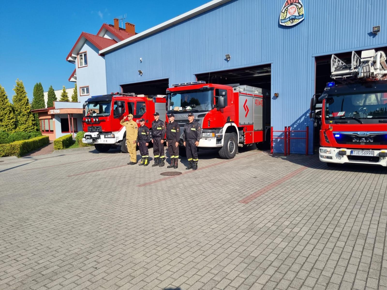 1 sierpnia 2024 r. punktualnie o godzinie 17:00 strażacy Jednostki Ratowniczo-Gaśniczej w Jędrzejowie oraz Posterunku Mieszanego w Sędziszowie, którzy pełnili w tym dniu służbę, stanęli na uroczystej zbiórce przed siedzibami Komendy Powiatowej Państwowej Straży Pożarnej w Jędrzejowie.