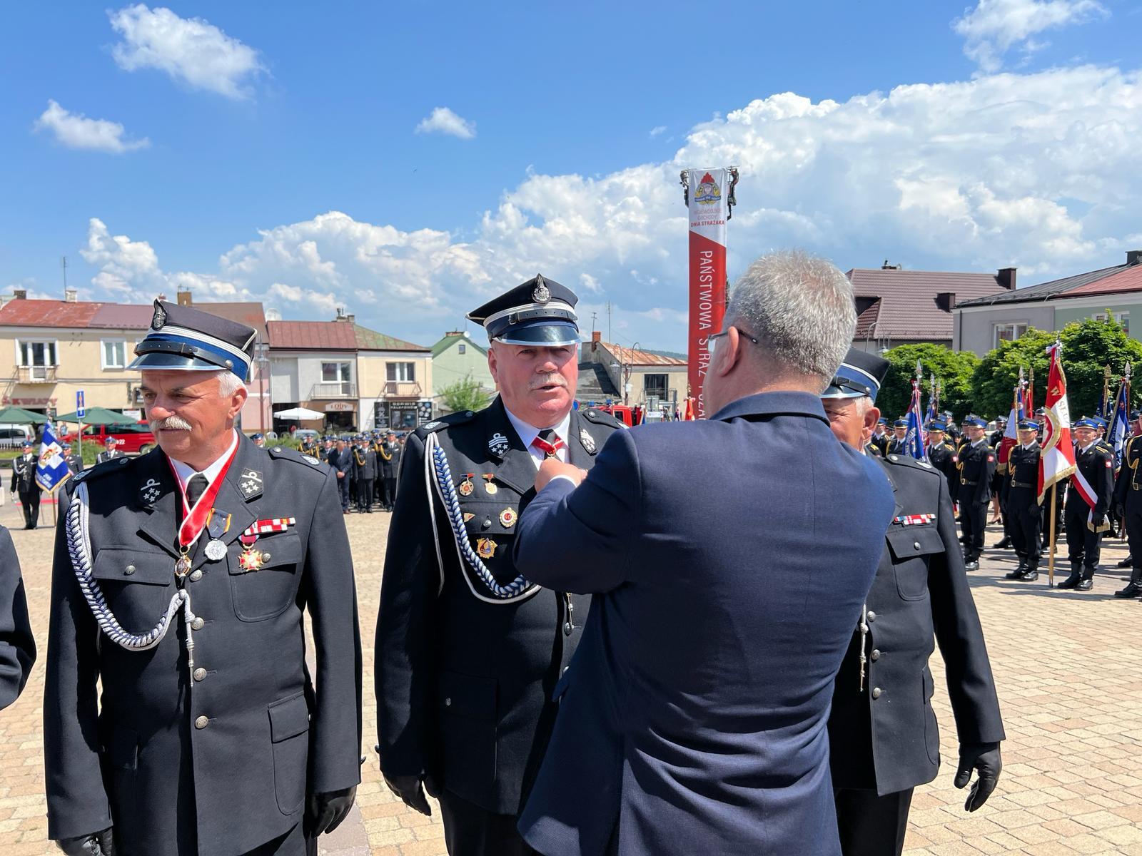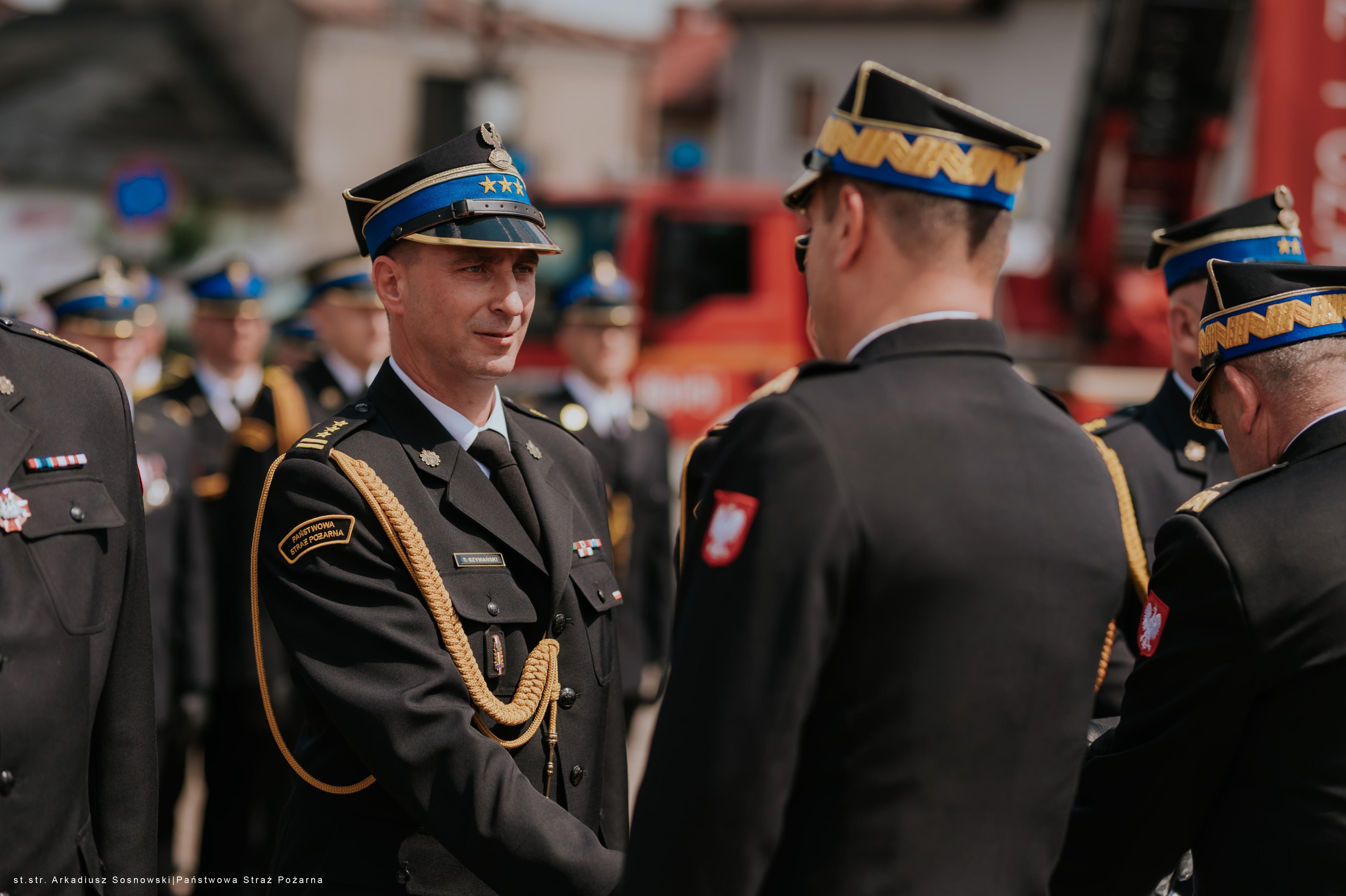 Podczas uroczystości wręczono odznaczenia oraz awanse na wyższe stopnie służbowe strażakom z powiatu jędrzejowskiego. Awans w stopniu na starszego brygadiera otrzymał zastępca komendanta PSP w Jędrzejowie Tomasz Szymański. Ponadto wśród odznaczonych i awansowanych znaleźli się: