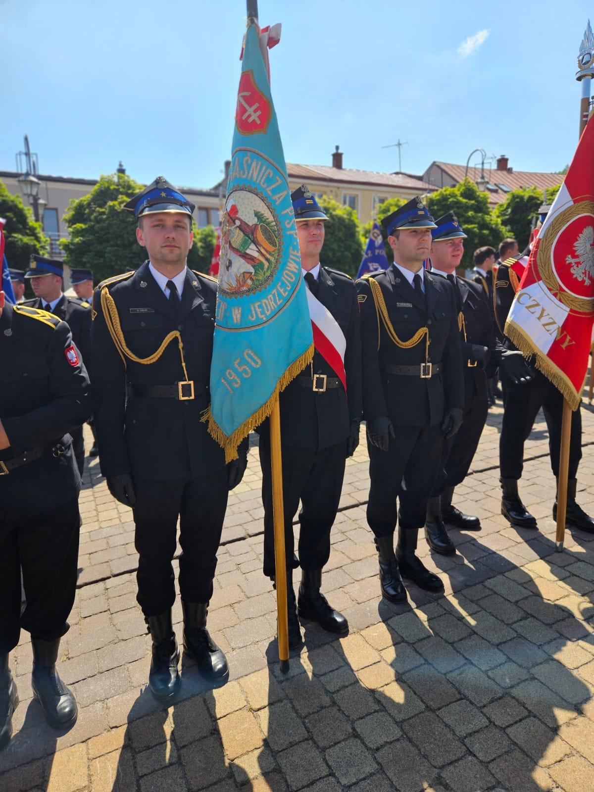 Uroczystość uświetniła obecność pocztów sztandarowych Komendy Powiatowej PSP w Jędrzejowie oraz oddziału powiatowego ZOSP RP w Jędrzejowie, który reprezentowali strażacy z OSP Rożnica.