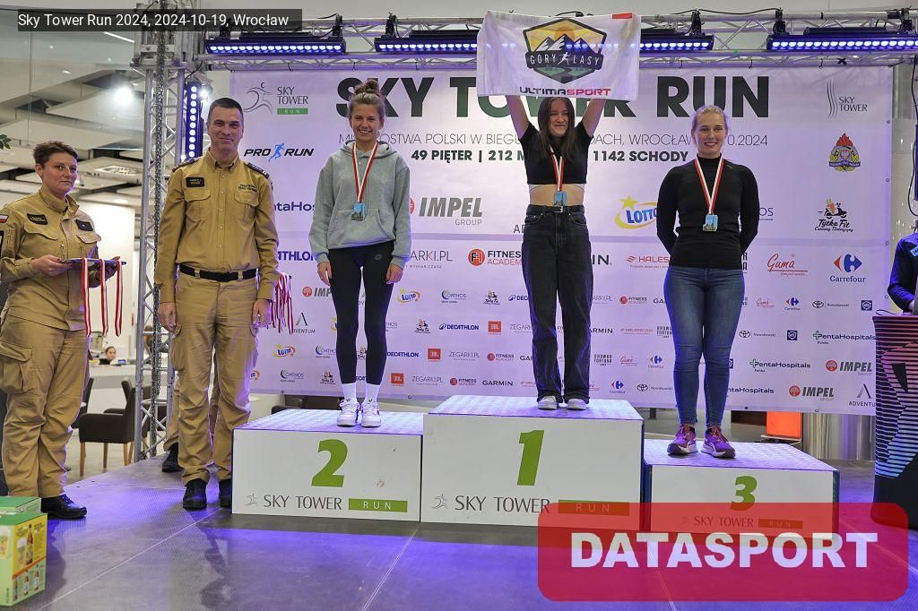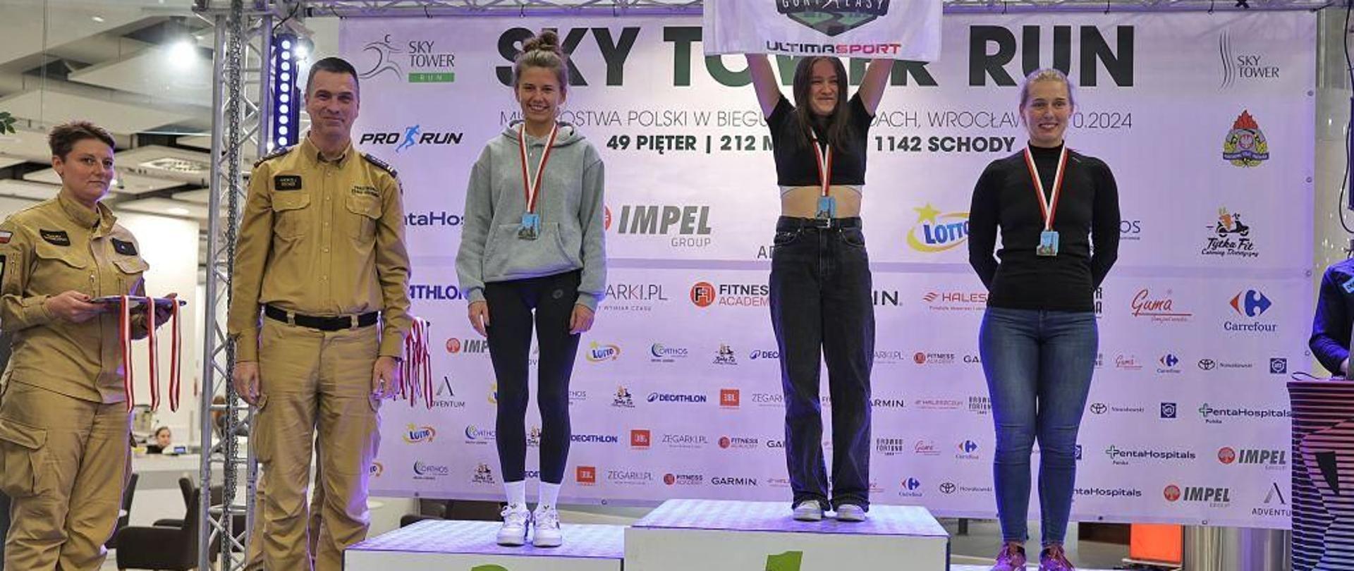 mł. asp. Dominika Ostrowska na podium Sky Tower Run 2024