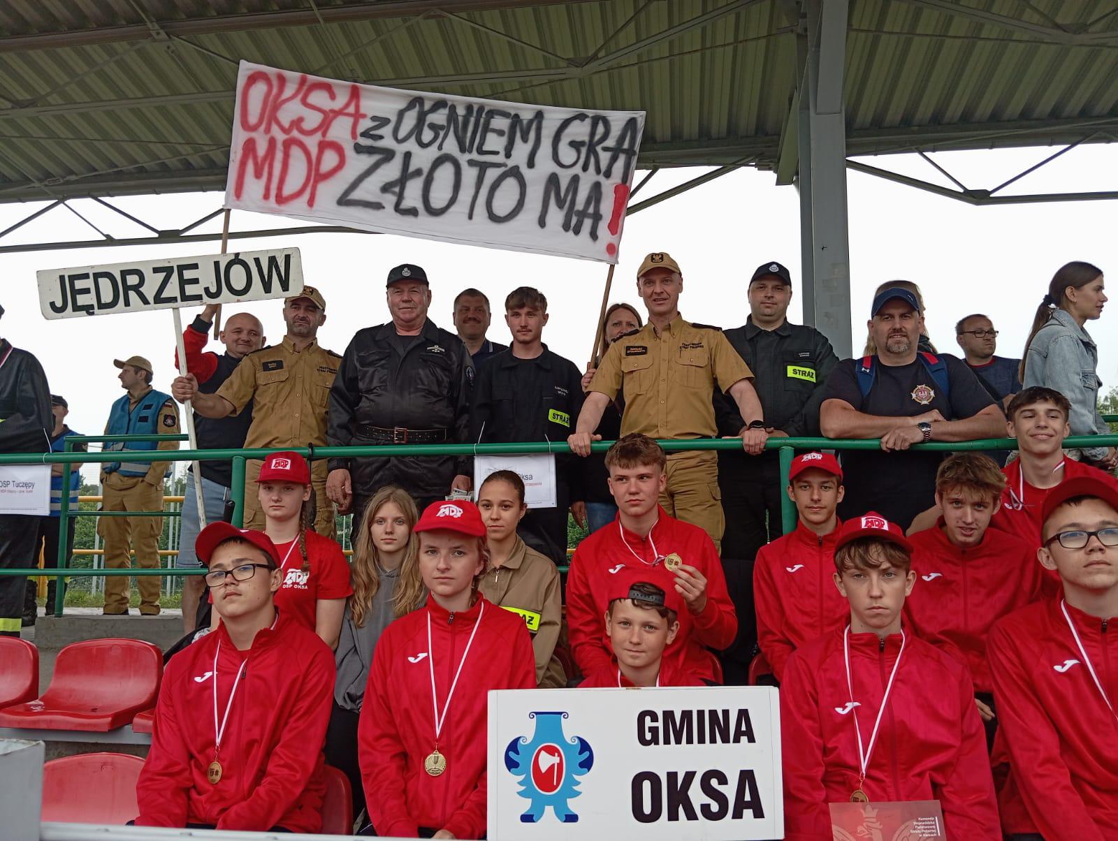 Powiat jędrzejowski reprezentowały dwie znakomite drużyny: MDP chłopców z Oksy oraz MDP dziewcząt z Sokołowa Górnego. Obie ekipy pokazały się z rewelacyjnej strony. Chłopcy z Oksy walczyli do samego końca, uzyskując fantastyczny wynik. Niestety, zabrakło im zaledwie 0,05 punktu, aby stanąć na najniższym stopniu podium. To minimalna różnica, która świadczy o niezwykle wysokim poziomie zawodów i znakomitym przygotowaniu naszej drużyny. Dziewczęta z Sokołowa Górnego błysnęły formą, zdobywając 2. miejsce w klasyfikacji generalnej i wygrywając sztafetę pożarniczą! Ich zaangażowanie, kondycja i współdziałanie na torze sztafetowym pokazały, co znaczy zgrany i ambitny zespół.