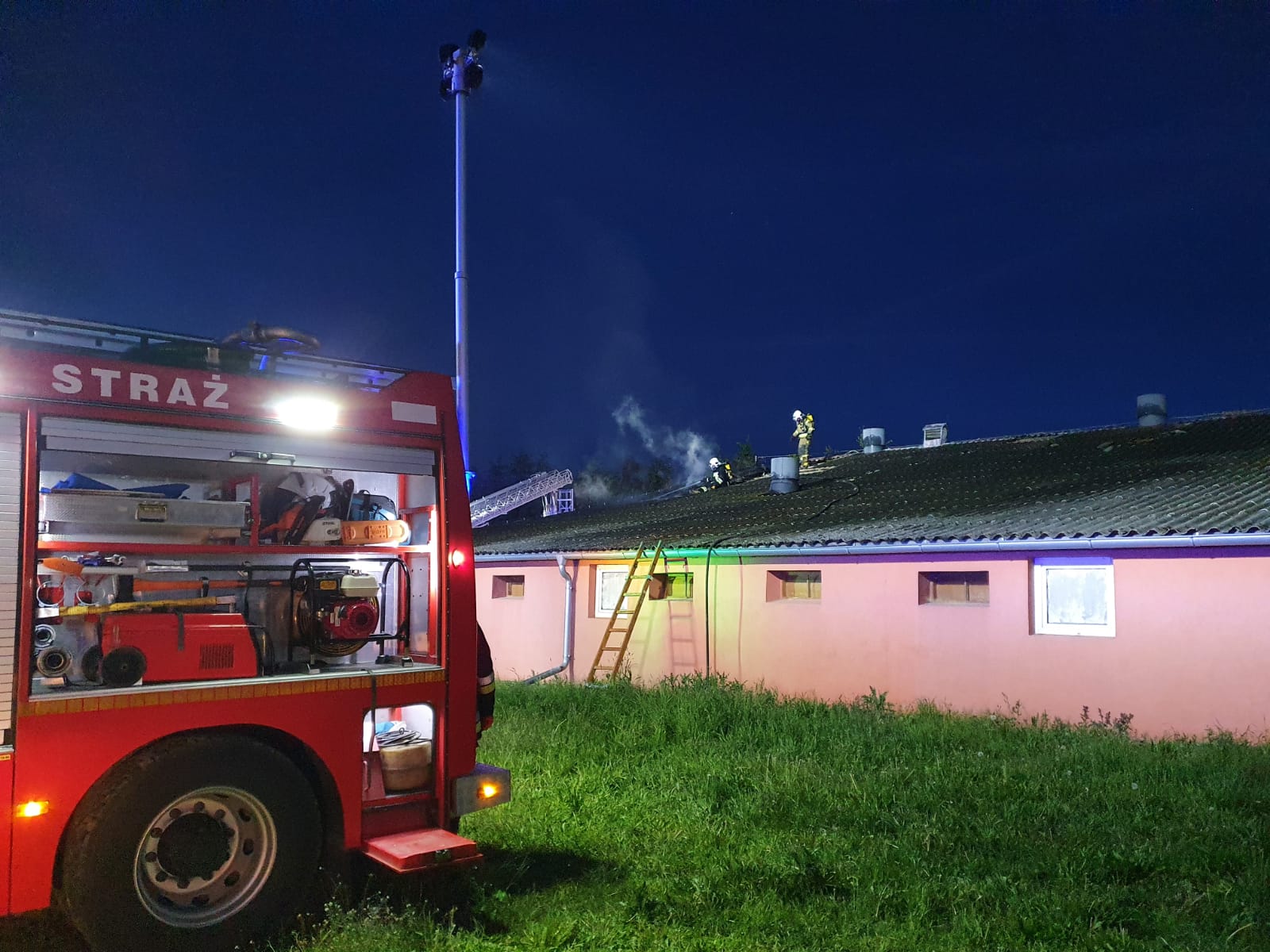 Po przybyciu na miejsce zastępów straży stwierdzono pożar poddasza oraz drewnianej więźby dachowej w południowej części budynku inwentarskiego (kurnika). Wewnątrz obiektu znajdowało się około 16 000 sztuk młodego drobiu. Działania straży polegały na zabezpieczeniu i oświetleniu miejsca zdarzenia oraz podaniu 3 prądów wody w natarciu na palący się budynek, w tym jednego prądu z kosza podnośnika hydraulicznego samochodu specjalnego SHD-23. Strażacy podali dodatkowo jeden prąd wody w obronie na północną część dachu. W następnej fazie działań strażacy przy użyciu plastikowych skrzynek przenosili zagrożone kurczęta w bezpieczną część budynku, która dodatkowo została wydzielona wewnątrz przy użyciu folii.