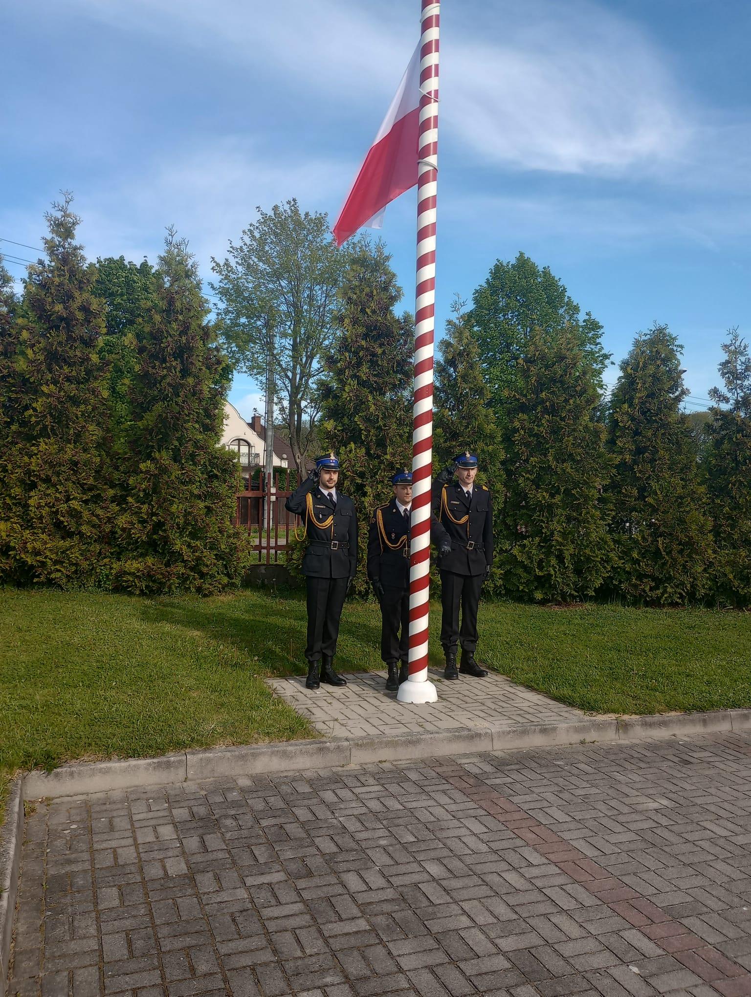 W uroczystości udział wzięli funkcjonariusze tutejszej jednostki ratowniczo-gaśniczej pod przewodnictwem zastępcy komendanta powiatowego PSP w Jędrzejowie bryg. Tomasza Szymańskiego, który przedstawił tło historyczne Dnia Flagi Rzeczypospolitej Polskiej. Podkreślił także znaczenie symboli narodowych oraz podziękował strażakom za ich trudną służbę w przeddzień ich święta. Następnie dokonano uroczystej zmiany służby.