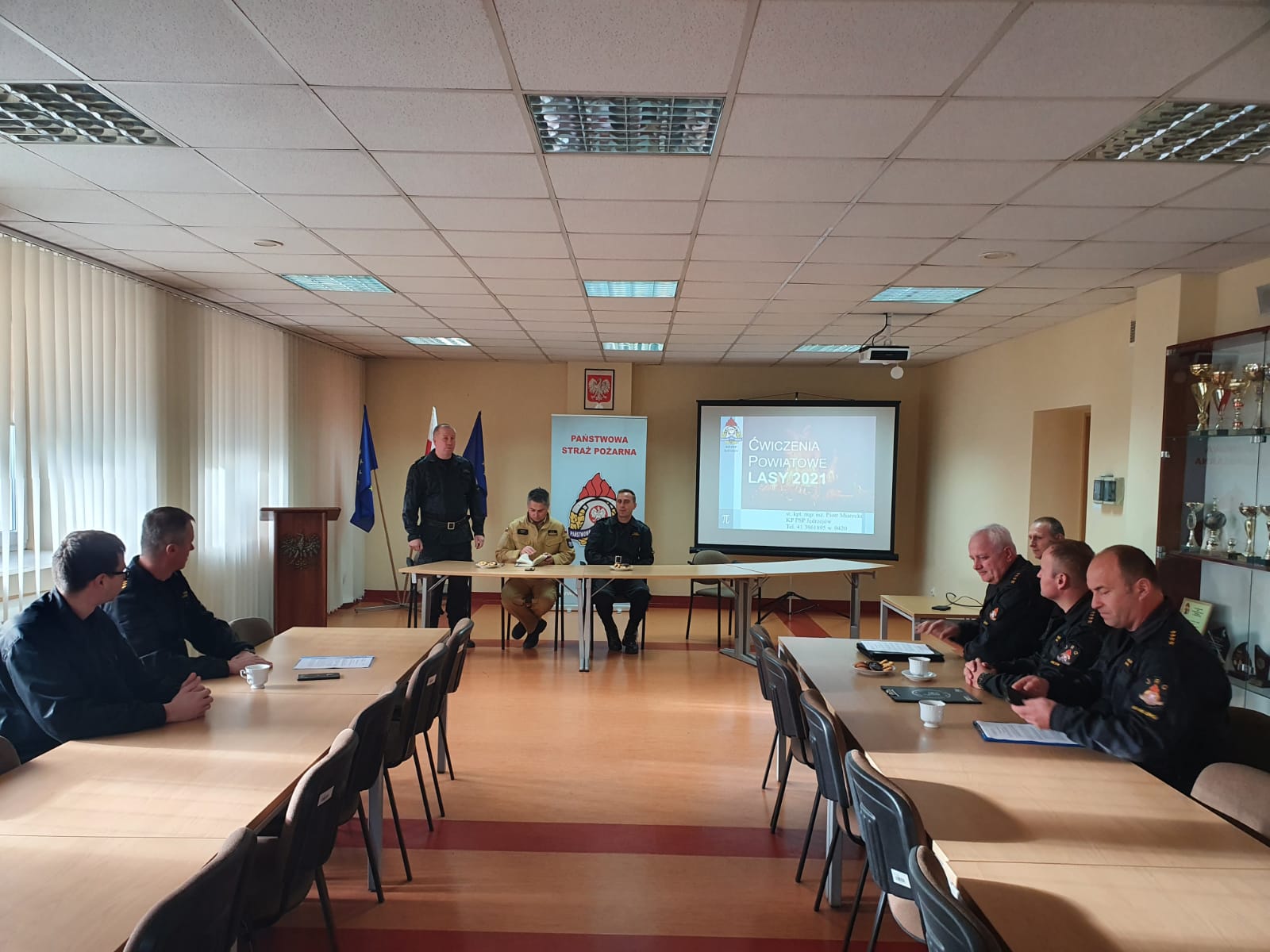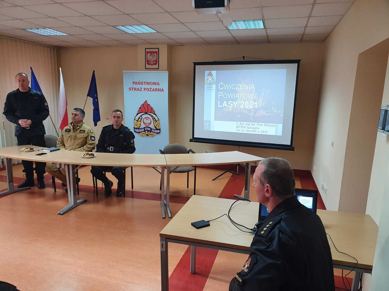 19 października 2021 r. w Komendzie Powiatowej Państwowej Straży Pożarnej w Jędrzejowie odbyło się spotkanie podsumowujące ćwiczenia powiatowe pod kryptonimem "Lasy 2021". Strażacy ćwiczyli 14 września 2021 r. na terenie leśnictwa Mnichów.