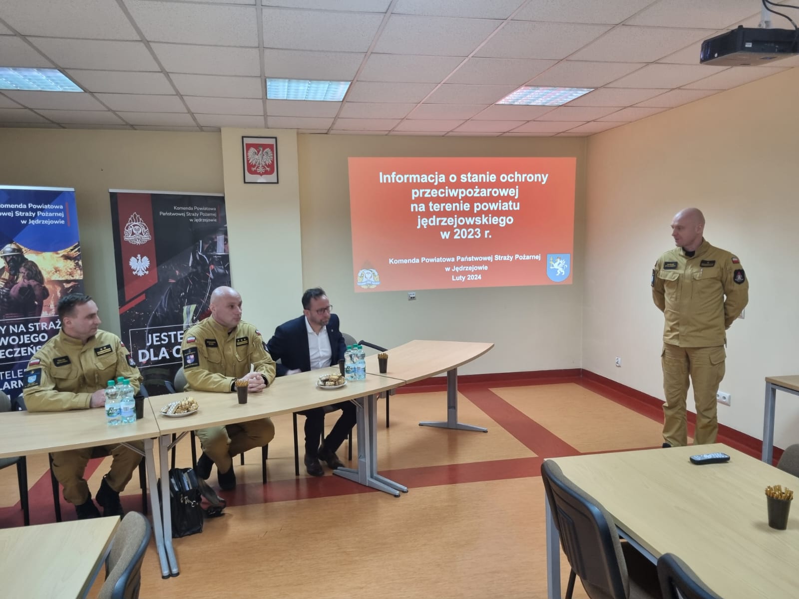 9 lutego 2024 roku w Komendzie Powiatowej Państwowej Straży Pożarnej w Jędrzejowie odbyło się podsumowanie działalności za 2023 rok. W naradzie uczestniczyli zaproszeni goście: zastępca świętokrzyskiego komendanta wojewódzkiego PSP w Kielcach st. bryg. Grzegorz Rajca, starosta jędrzejowski Paweł Faryna, burmistrzowie i wójtowie powiatu jędrzejowskiego. Ponadto w naradzie udział wzięli prezesi z jednostek ochotniczych straży pożarnych oraz funkcjonariusze i pracownicy komendy.