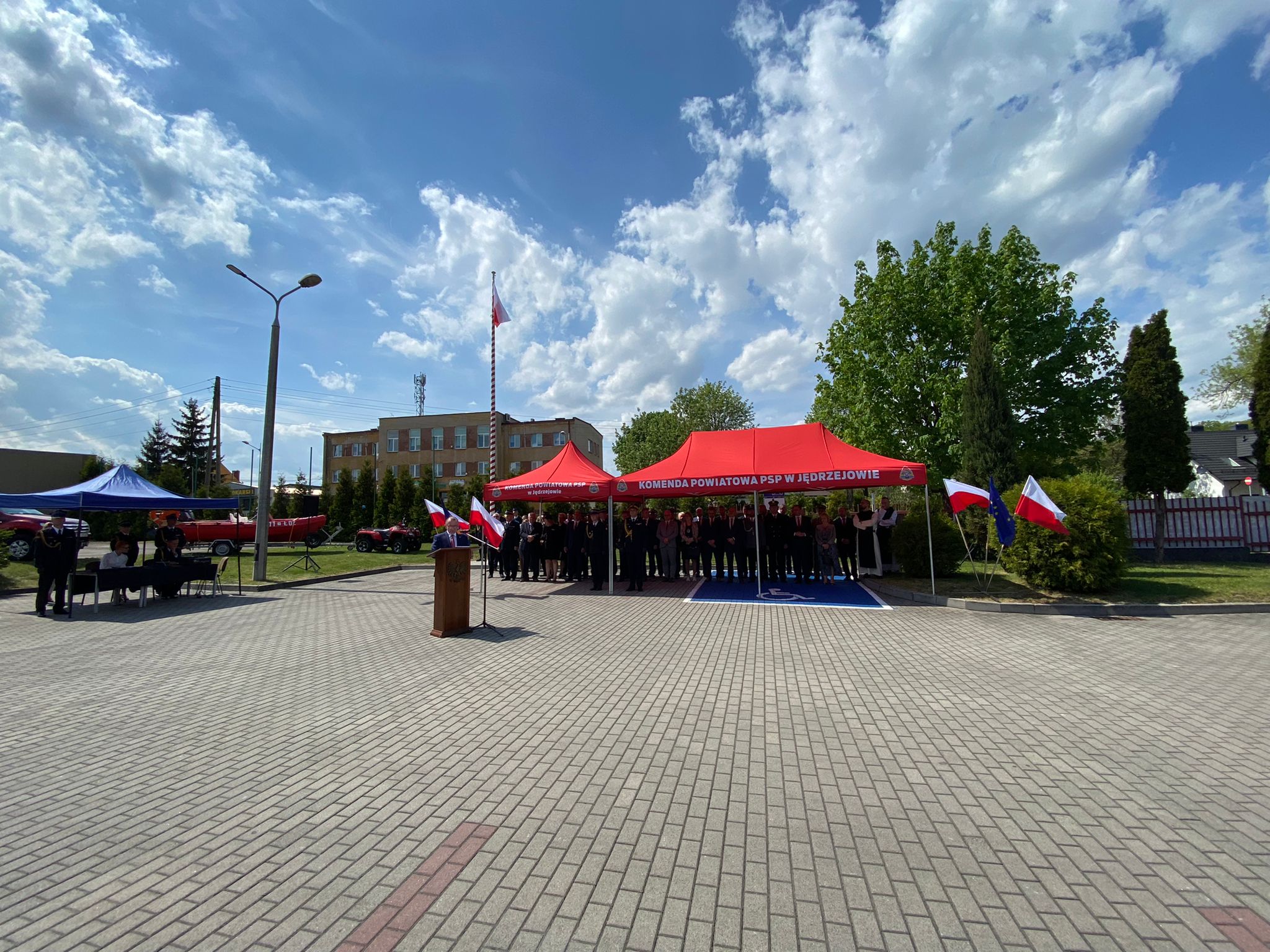 13 maja 2022 r. w Komendzie Powiatowej Państwowej Straży Pożarnej w Jędrzejowie odbyły się Powiatowe Obchody Dnia Strażaka. W uroczystości uczestniczyli: świętokrzyski komendant wojewódzki Państwowej Straży Pożarnej w Kielcach nadbryg. Krzysztof Ciosek, wicemarszałek województwa świętokrzyskiego Marek Bogusławski, radna sejmiku województwa świętokrzyskiego Bogusława Wypych, starosta powiatu jędrzejowskiego Paweł Faryna, prezes Zarządu Oddziału Powiatowego Związku Ochotniczych Straży Pożarnych RP w Jędrzejowie dh Tadeusz Soboń oraz zaproszeni goście. Komendant Powiatowy Państwowej Straży Pożarnej w Jędrzejowie mł. bryg. Mariusz Stolarczyk dokonał otwarcia uroczystego apelu oraz powitał przybyłych gości.