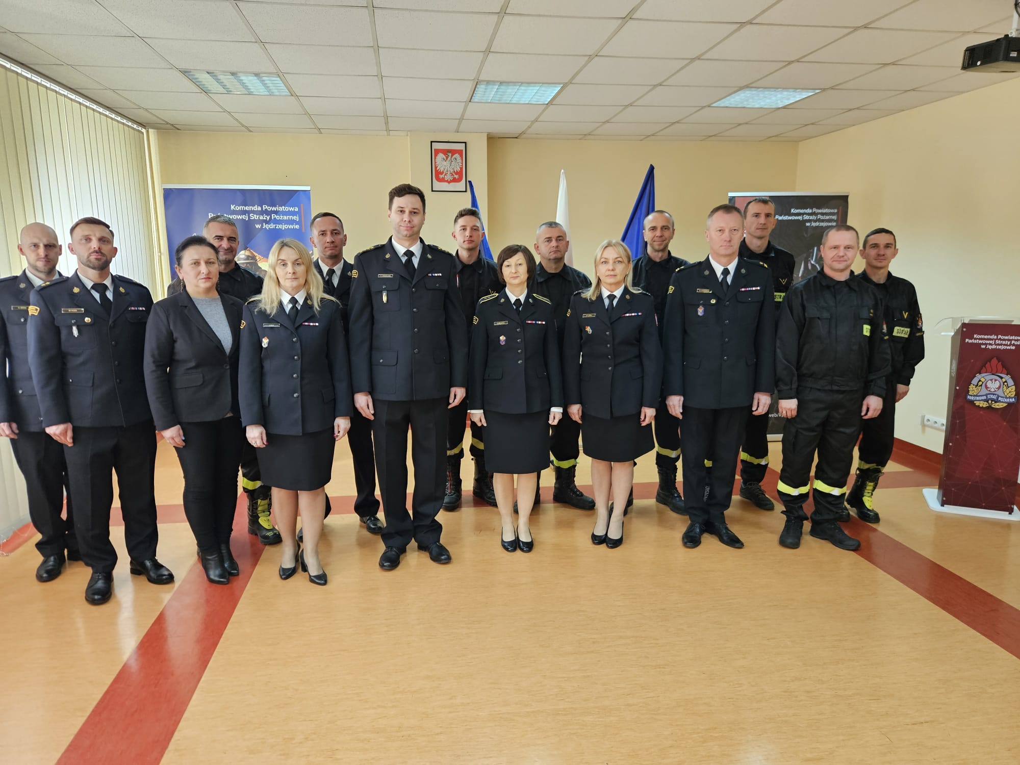 Następnie, w związku z powyższym wydarzeniem, w Komendzie Powiatowej PSP w Jędrzejowie odbyła się uroczysta zbiórka z udziałem funkcjonariuszy i pracowników cywilnych komendy.