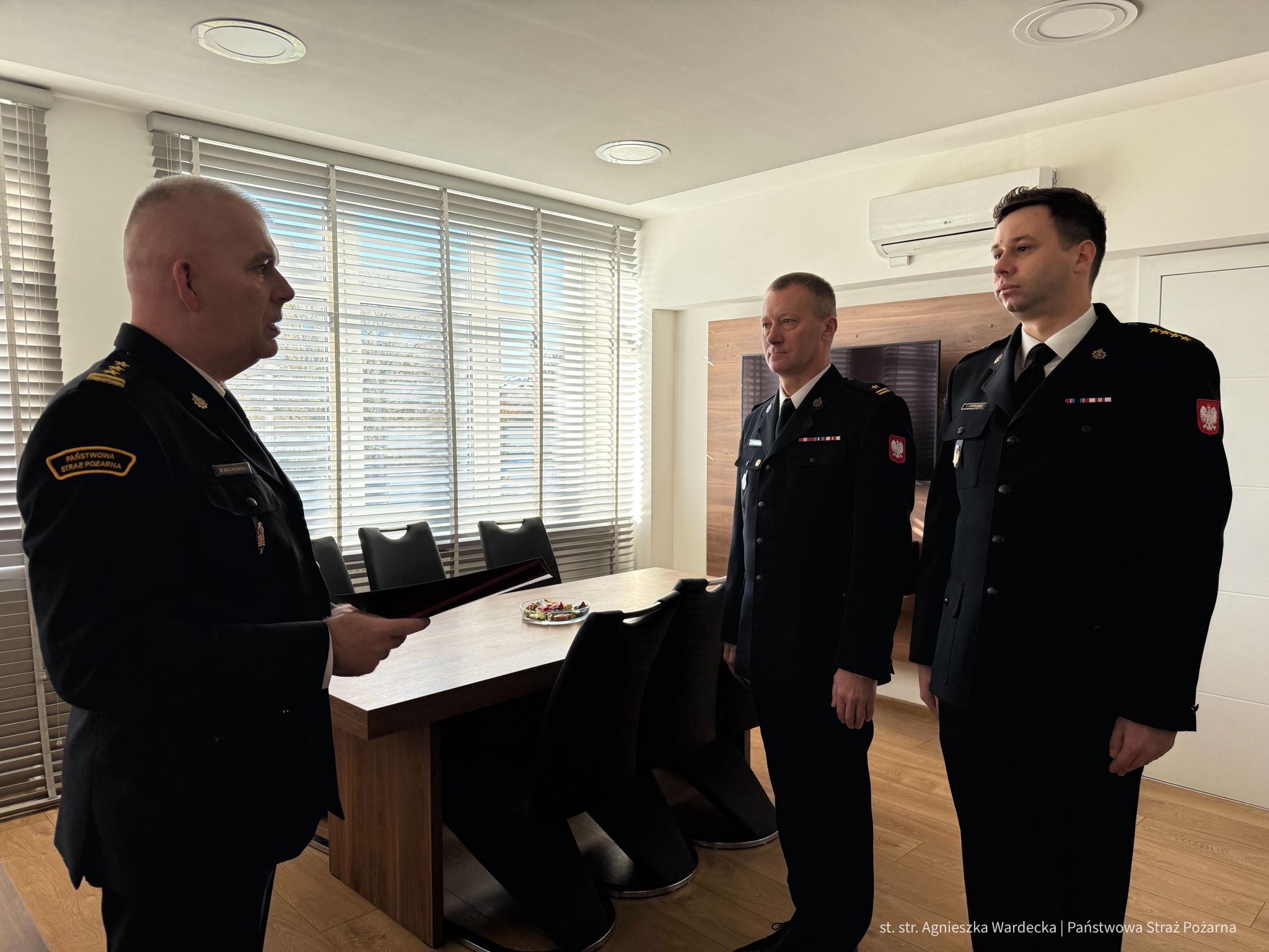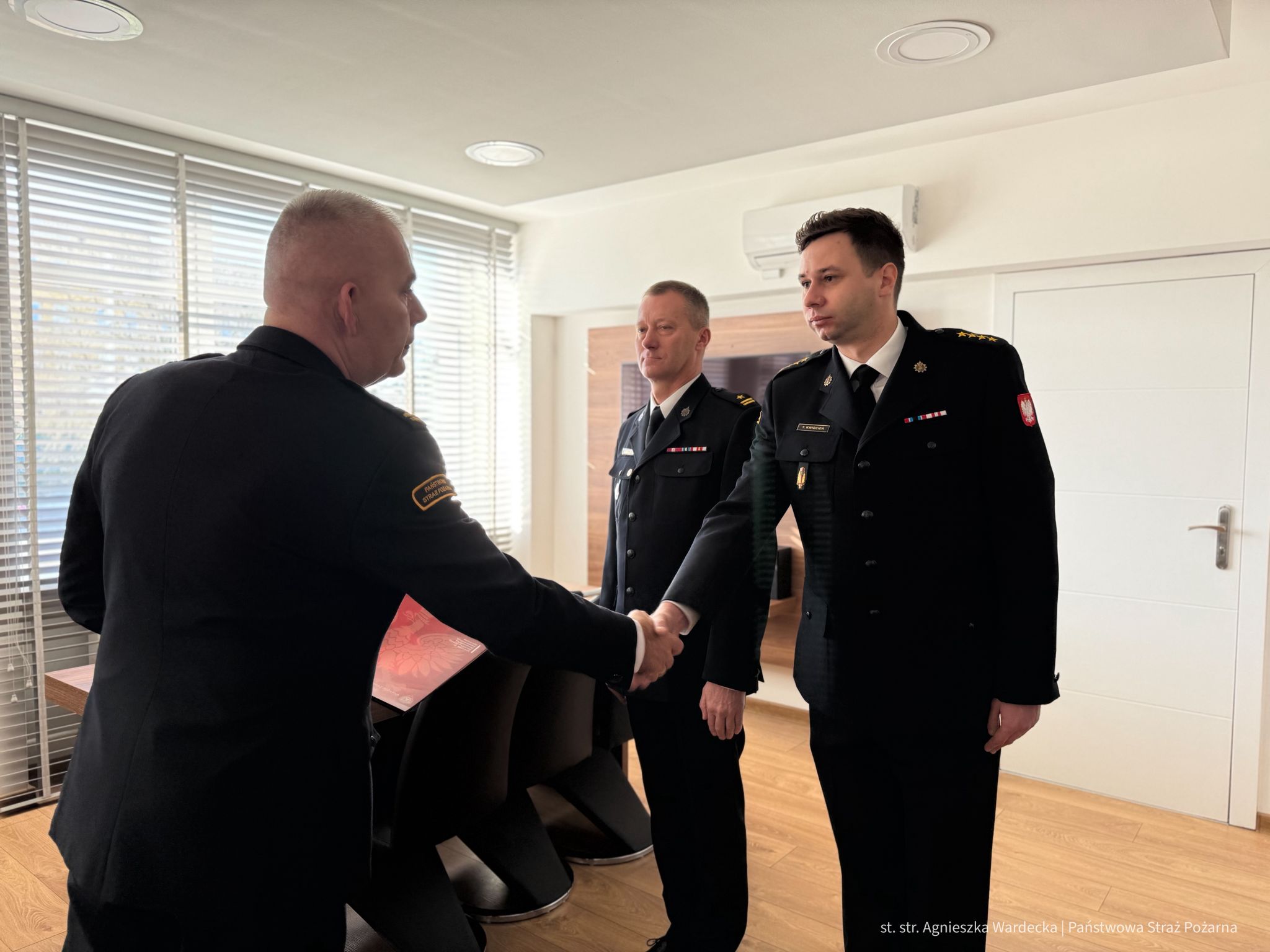 Wręczenia aktu powołania dokonał Zastępca Świętokrzyskiego Komendanta Wojewódzkiego PSP st. bryg. Marcin Machowski w obecności Komendanta Powiatowego PSP w Jędrzejowie mł. bryg. Sebastiana Dudzicza. Wręczenie aktu powołania miało miejsce w Komendzie Wojewódzkiej PSP w Kielcach w dniu 31 października 2025 r.