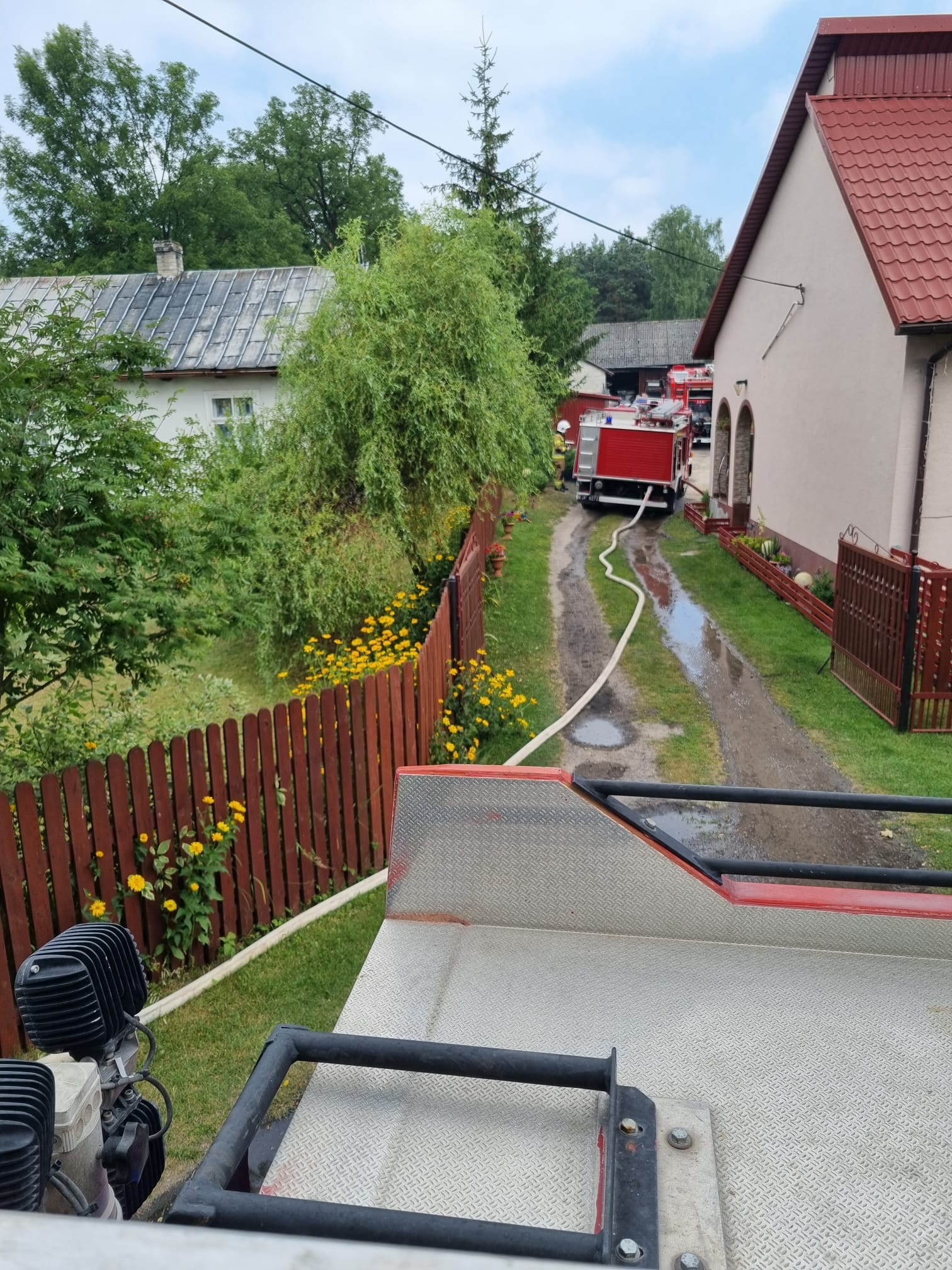 Dalsze działania straży polegały na rozbiórce nadpalonych elementów więźby dachowej, które przenoszono w bezpieczne miejsce i dogaszano wodą. Po ugaszeniu pożaru całe pogorzelisko sprawdzono kamerą termowizyjną nie stwierdzając dodatkowego zagrożenia.