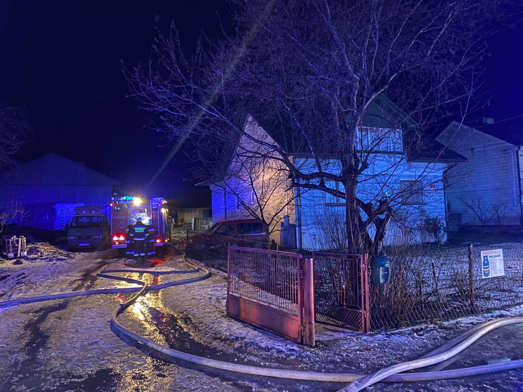 Działania straży polegały na zabezpieczeniu i oświetleniu miejsca zdarzenia, podaniu 2 prądów wody w natarciu na palący się budynek oraz 2 prądów w obronie przylegającego budynku gospodarczego. W pomieszczeniu garażu znajdowały się dodatkowo butle z tlenem oraz butla z acetylenem, które zostały poddane chłodzeniu za pomocą przygotowanego bezobsługowego stanowiska gaśniczego. Po zlokalizowaniu pożaru sprawdzono temperaturę płaszcza butli przy użyciu kamery termowizyjnej nie stwierdzając podwyższonych temperatur. Sprawnie przeprowadzona akcja straży pożarnej przyczyniła się do szybkiej lokalizacji pożaru oraz uratowania mienia dużej wartości. Po ugaszeniu pożaru strażacy wykorzystując podręczny sprzęt burzący skontrolowali pogorzelisko, które dodatkowo przelewali wodą.
