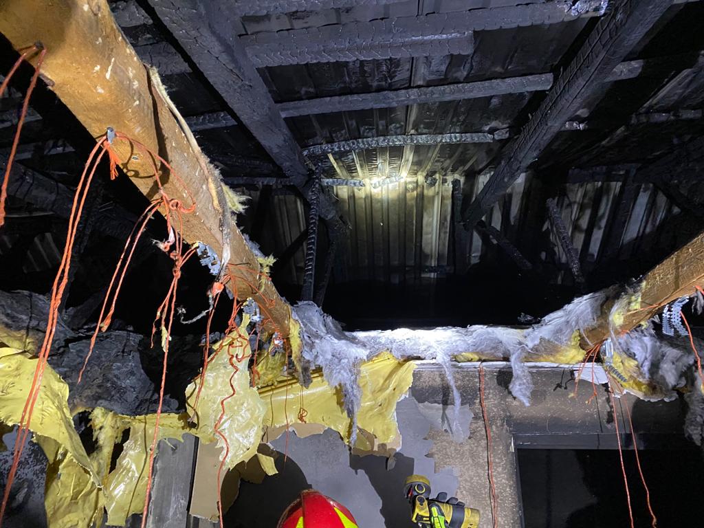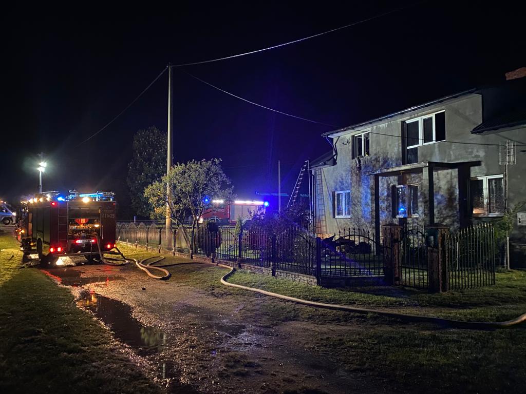 Po przybyciu na miejsce zastępów straży stwierdzono pożar jednego z pomieszczeń na poddaszu oraz drewnianej konstrukcji dachu w budynku mieszkalnym. Działania straży polegały na zabezpieczeniu miejsca zdarzenia, oświetleniu terenu prowadzonych działań oraz odłączeniu instalacji elektrycznej w budynku. Następnie strażacy podali dwa prądy wody w natarciu na palące się poddasze. Dodatkowo do wnętrza budynku wprowadzono trzecią linię gaśniczą, co pozwoliło na szybką lokalizację i ugaszenie pożaru. Jeden z domowników, który próbował ugasić pożar na własną rękę doznał lekkich oparzeń. Strażacy zabezpieczyli poparzoną dłoń opatrunkiem hydrożelowym, zapewnili komfort termiczny i psychiczny. Po ugaszeniu pożaru cały budynek sprawdzono kamerą termowizyjną oraz miernikiem wielogazowym nie stwierdzając dodatkowych zagrożeń.