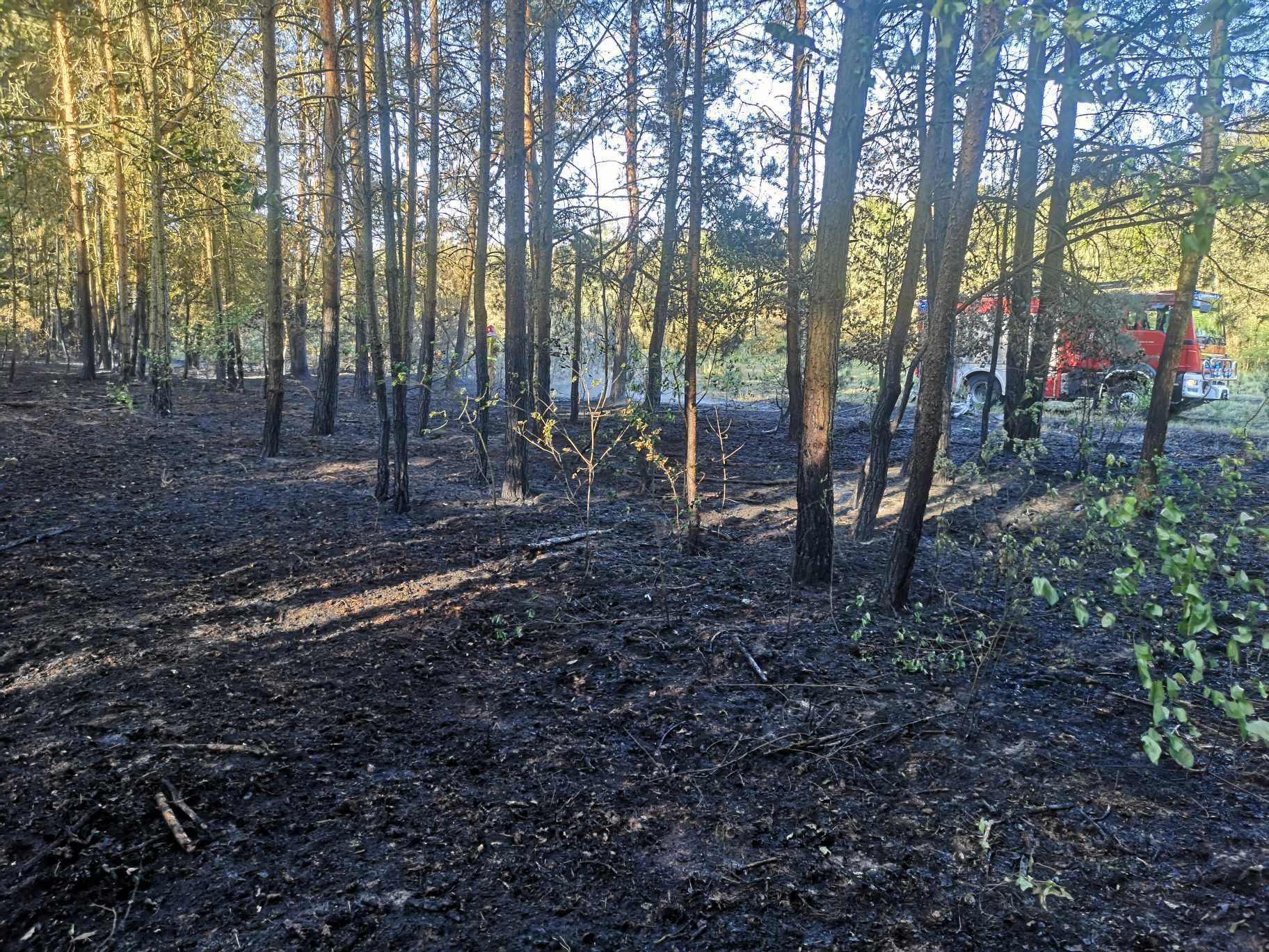 Pożar poszycia w lesie
