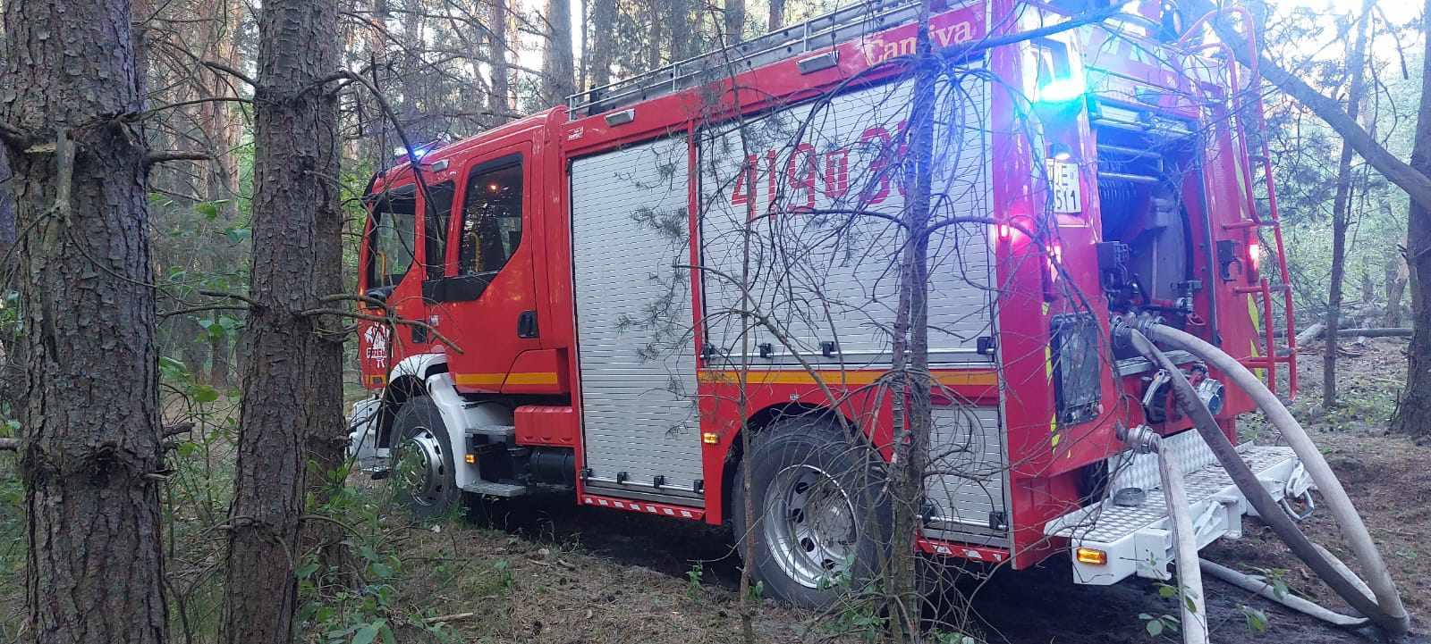 Działania straży polegały na zabezpieczeniu miejsca zdarzenia oraz podaniu kilku prądów gaśniczych wody w natarciu czym skutecznie zlokalizowano pożar. Następnie strażacy przystąpili do dogaszenia pogorzeliska za pomocą tłumic, jednocześnie przelewając go wodą. Łącznie spaleniu uległo blisko 2 hektary lasu.