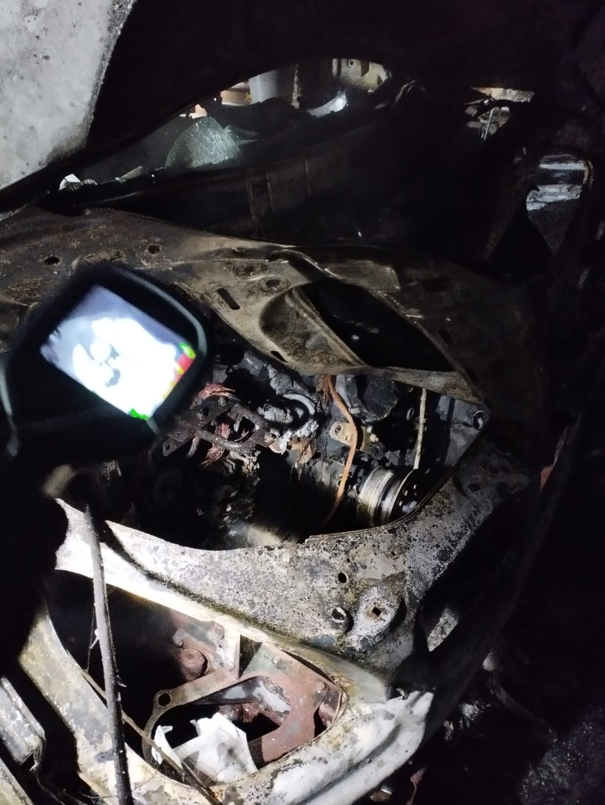 Działania straży pożarnej polegały na zabezpieczeniu i oświetleniu miejsca zdarzenia oraz ugaszeniu pożaru przy użyciu jednego prądu piany ciężkiej. Następnie prądem wody z linii gaśniczej schłodzono elementy samochodu, po czym sprawdzono pojazd kamerą termowizyjną nie stwierdzając podwyższonych temperatur.