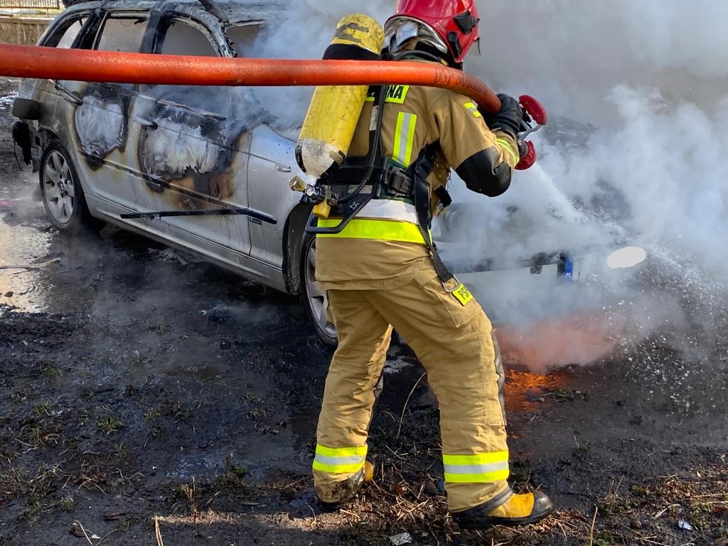 Działania straży pożarnej polegały na zabezpieczeniu miejsca zdarzenia oraz ugaszeniu pożaru przy użyciu jednego prądu piany ciężkiej. Następnie prądem wody z linii gaśniczej schłodzono elementy samochodu, po czym sprawdzono pojazd kamerą termowizyjną nie stwierdzając podwyższonych temperatur.