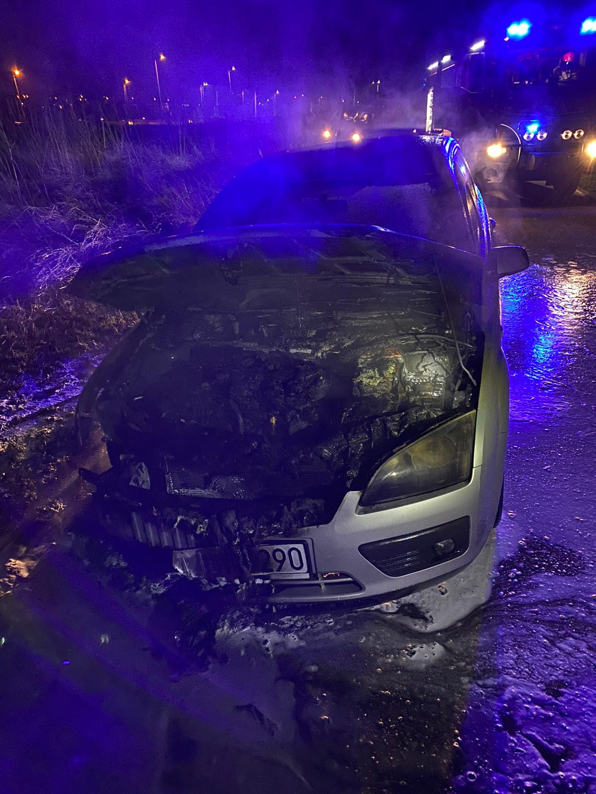 Działania straży pożarnej polegały na zabezpieczeniu i oświetleniu miejsca zdarzenia oraz ugaszeniu pożaru przy użyciu jednego prądu piany ciężkiej. Strażacy wyposażeni w kamerę termowizyjną schłodzili następnie rozgrzane elementy konstrukcyjne pojazdu. Uszkodzony samochód został następnie usunięty z jezdni w bezpieczne miejsce.
