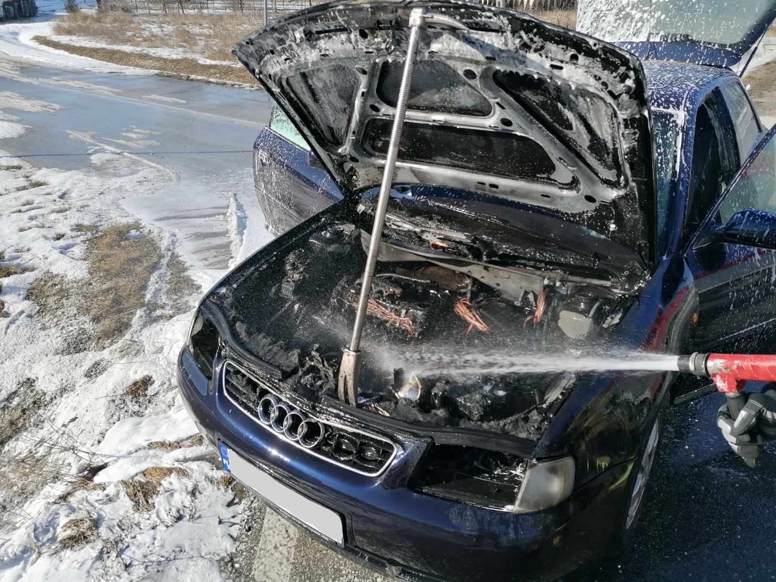 Działania straży pożarnej polegały na zabezpieczeniu miejsca zdarzenia oraz ugaszeniu pożaru przy użyciu jednego prądu piany ciężkiej. Po przeprowadzonym rozpoznaniu ustalono, iż samochód zasilany jest z instalacji gazowej, dlatego też zakręcono butlę z LPG znajdującą się w bagażniku pojazdu. Następnie prądem wody z linii szybkiego natarcia schłodzono elementy samochodu, po czym sprawdzono pojazd kamerą termowizyjną nie stwierdzając podwyższonych temperatur.