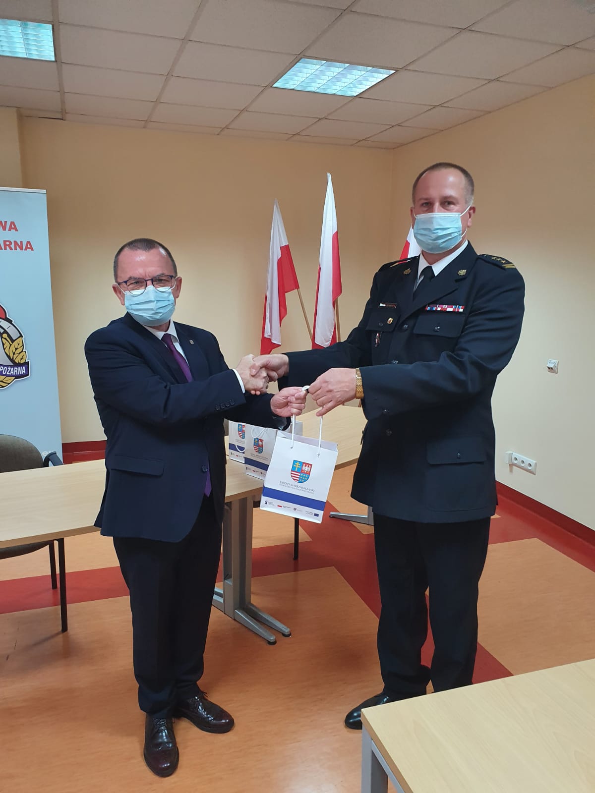 Pulsoksymetry zostały zakupione przez Urząd Marszałkowski Województwa Świętokrzyskiego, a samego przekazania dokonał wicemarszałek województwa świętokrzyskiego Marek Bogusławski wraz z komendantem powiatowym Państwowej Straży Pożarnej st. bryg. Pawłem Jakubowskim oraz jego zastępcą bryg. Tomaszem Szymańskim.