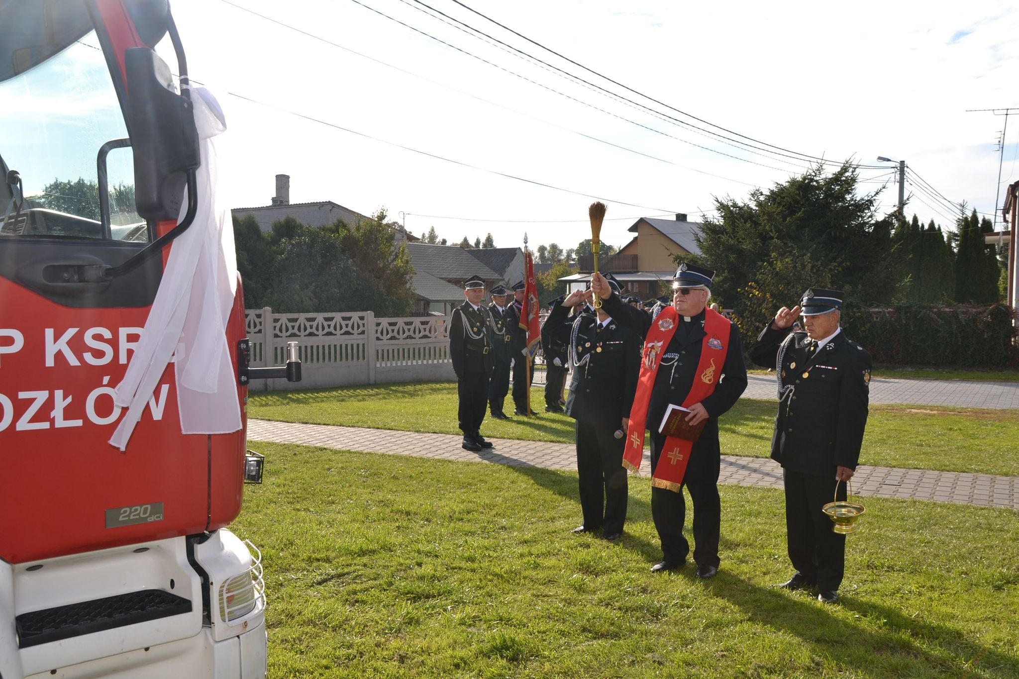 Uroczystego poświęcenia pojazdu dokonał ksiądz kanonik Jerzy Korona, kapelan strażaków z terenu Miasta i Gminy Małogoszcz. Średni samochód ratowniczo-gaśniczy GBA-Rt 2/24/750 Renault został przekazany jednostce OSP Kozłów z Komendy Wojewódzkiej PSP w Kielcach.