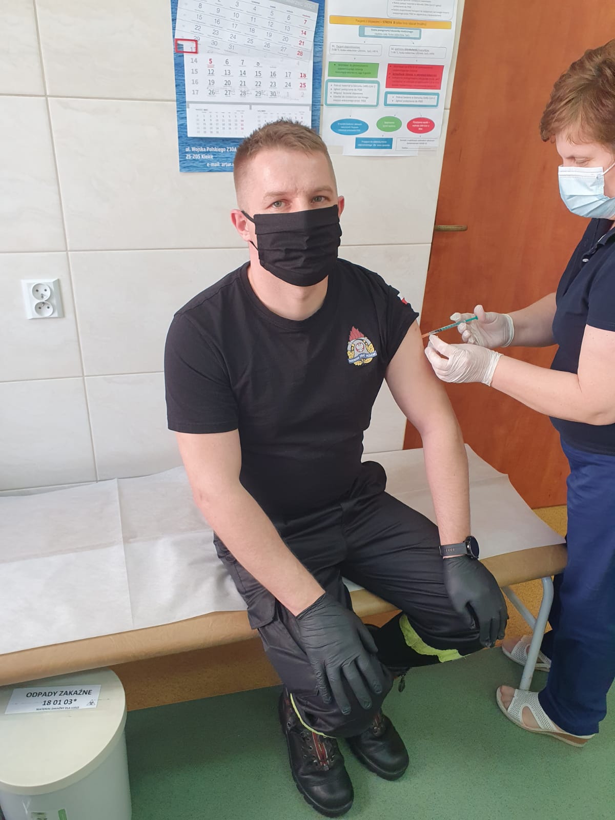 Pierwszą dawkę szczepionki przyjęli zarówno funkcjonariusze Komendy Powiatowej Państwowej Straży Pożarnej w Jędrzejowie jak i druhowie z ochotniczych straży pożarnych.