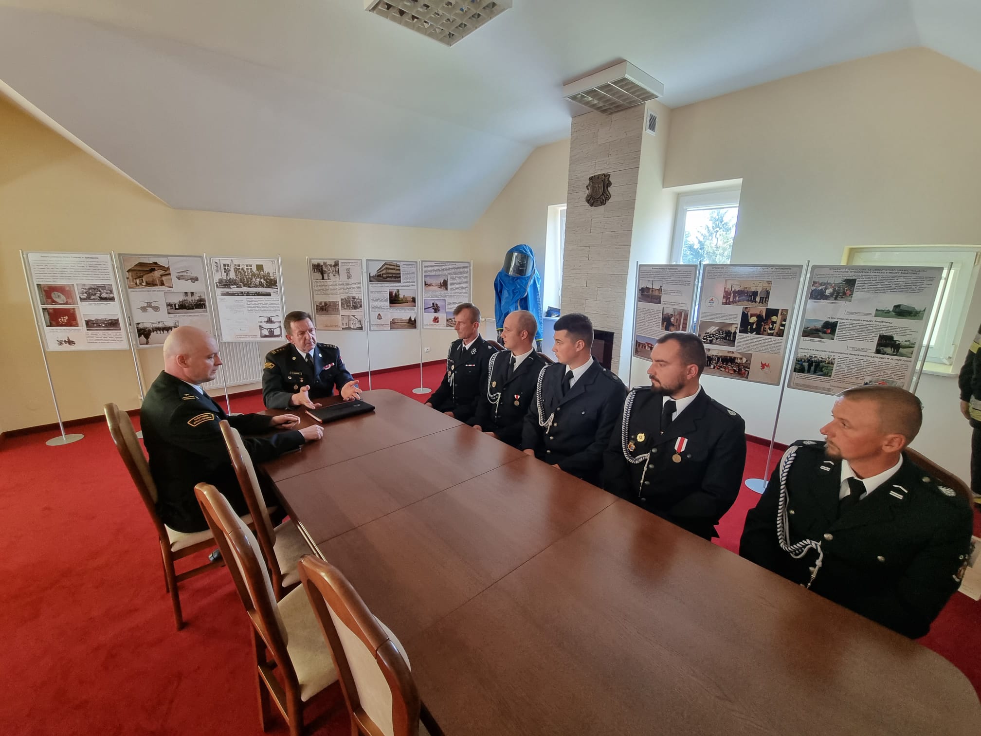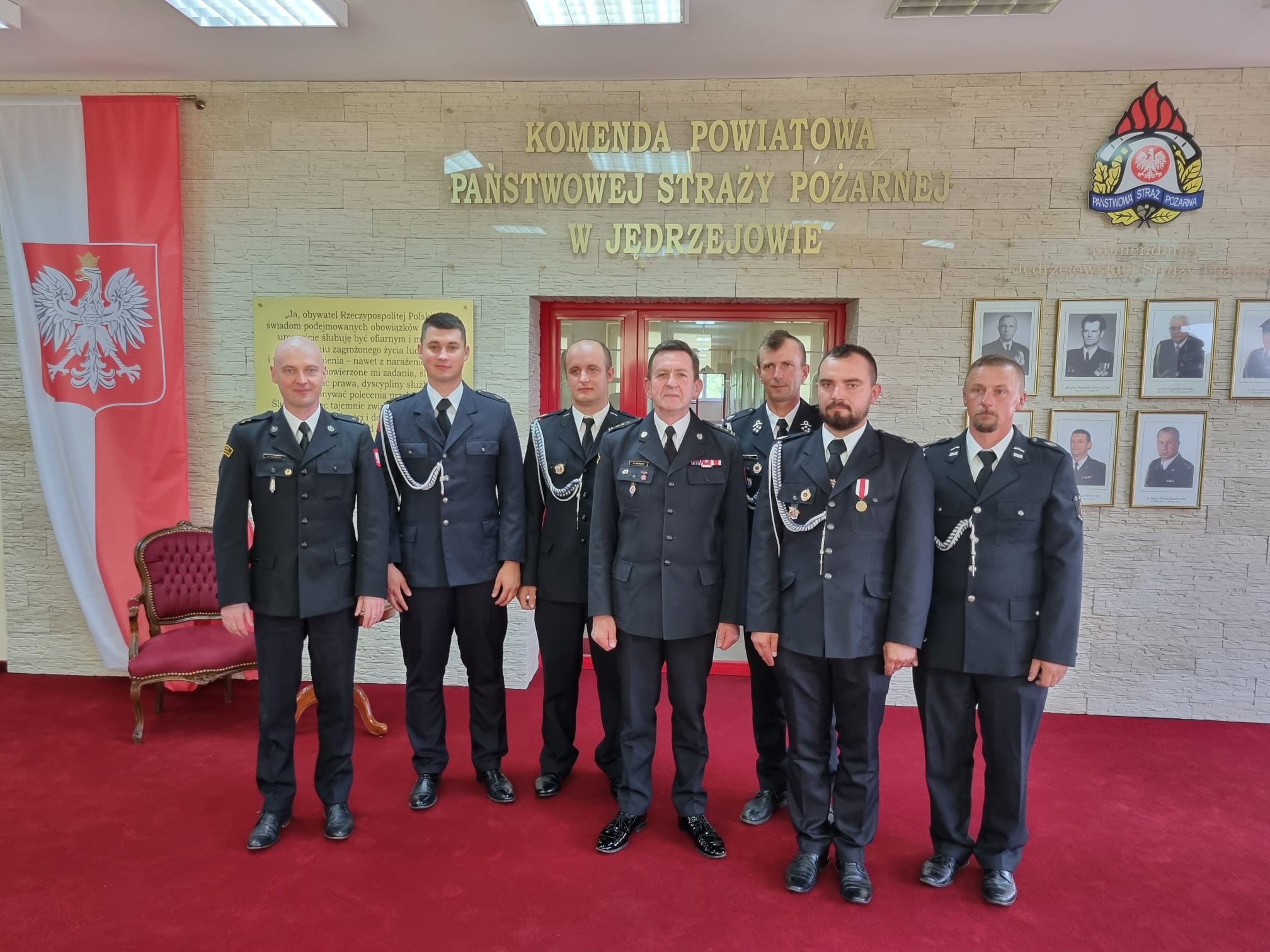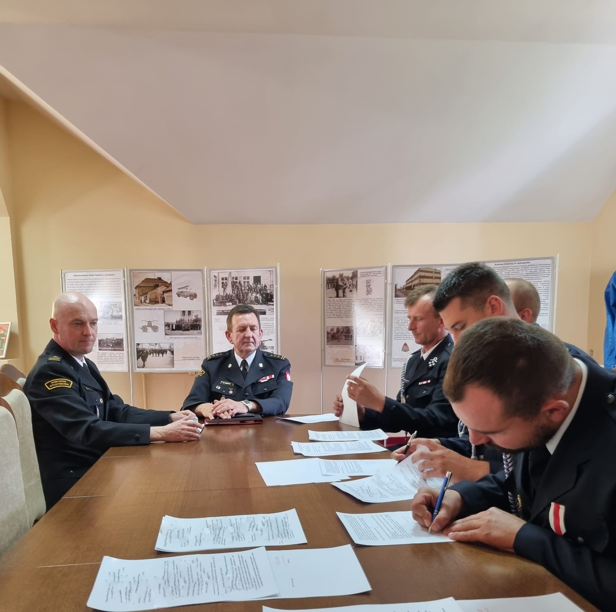 14 lipca 2022 r. w siedzibie Komendy Powiatowej Państwowej Straży Pożarnej w Jędrzejowie odbyło się spotkanie, w którym uczestniczył p.o. zastępcy świętokrzyskiego komendanta wojewódzkiego PSP w Kielcach st. bryg. Sławomir Karwat, komendant powiatowy PSP w Jędrzejowie mł. bryg. Mariusz Stolarczyk oraz druhowie z poszczególnych jednostek OSP z terenu powiatu jędrzejowskiego.