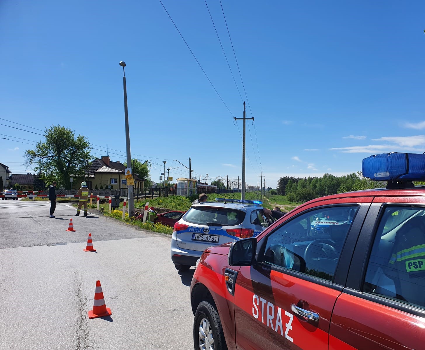 Działania jednostek ochrony przeciwpożarowej polegały na zabezpieczeniu miejsca zdarzenia, następnie przystąpiono do odłączenia akumulatora oraz zakręcenia zaworu w instalacji gazowej w uszkodzonym pojeździe. Kierowca, który sam podróżował samochodem nie odniósł żadnych obrażeń oraz odmówił udzielenia mu pomocy medycznej. Dalsze działania straży polegały na zabezpieczeniu uszkodzonego słupa podporą stabilizacyjną.