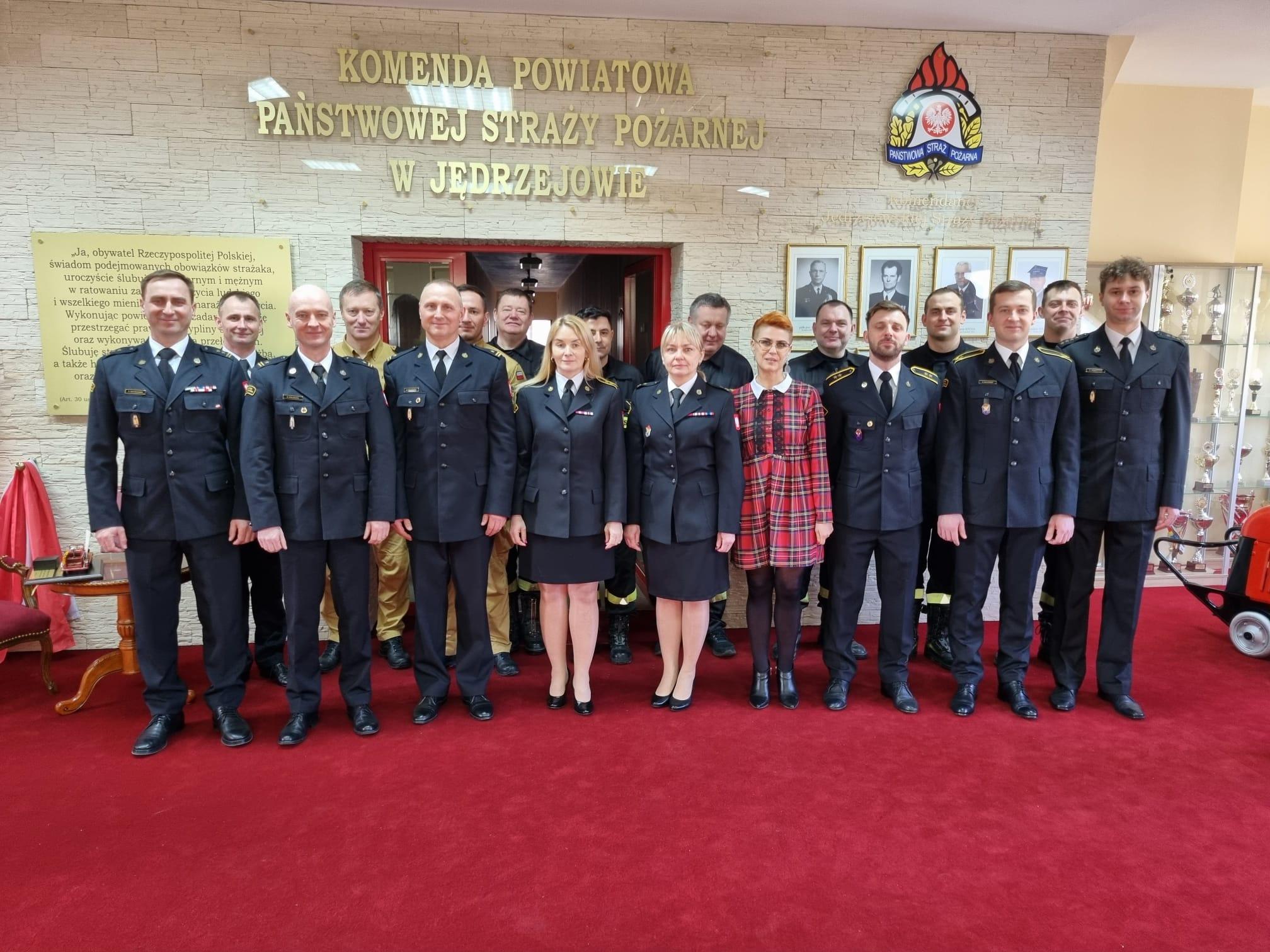 26 lutego 2024 roku w siedzibie Komendy Powiatowej Państwowej Straży Pożarnej w Jędrzejowie odbyła się uroczysta zbiórka, podczas której ze służbą pożegnał się i przeszedł na emeryturę mł. bryg. Piotr Miarecki- naczelnik wydziału operacyjno-szkoleniowego. Komendant Powiatowy PSP w Jędrzejowie mł. bryg. Mariusz Stolarczyk w obecności strażaków podziękował funkcjonariuszowi za zaangażowanie podczas wieloletniej służby oraz życzył dużo zdrowia i wszelkiej pomyślności w życiu osobistym i rodzinnym wręczając pamiątkowy list gratulacyjny.