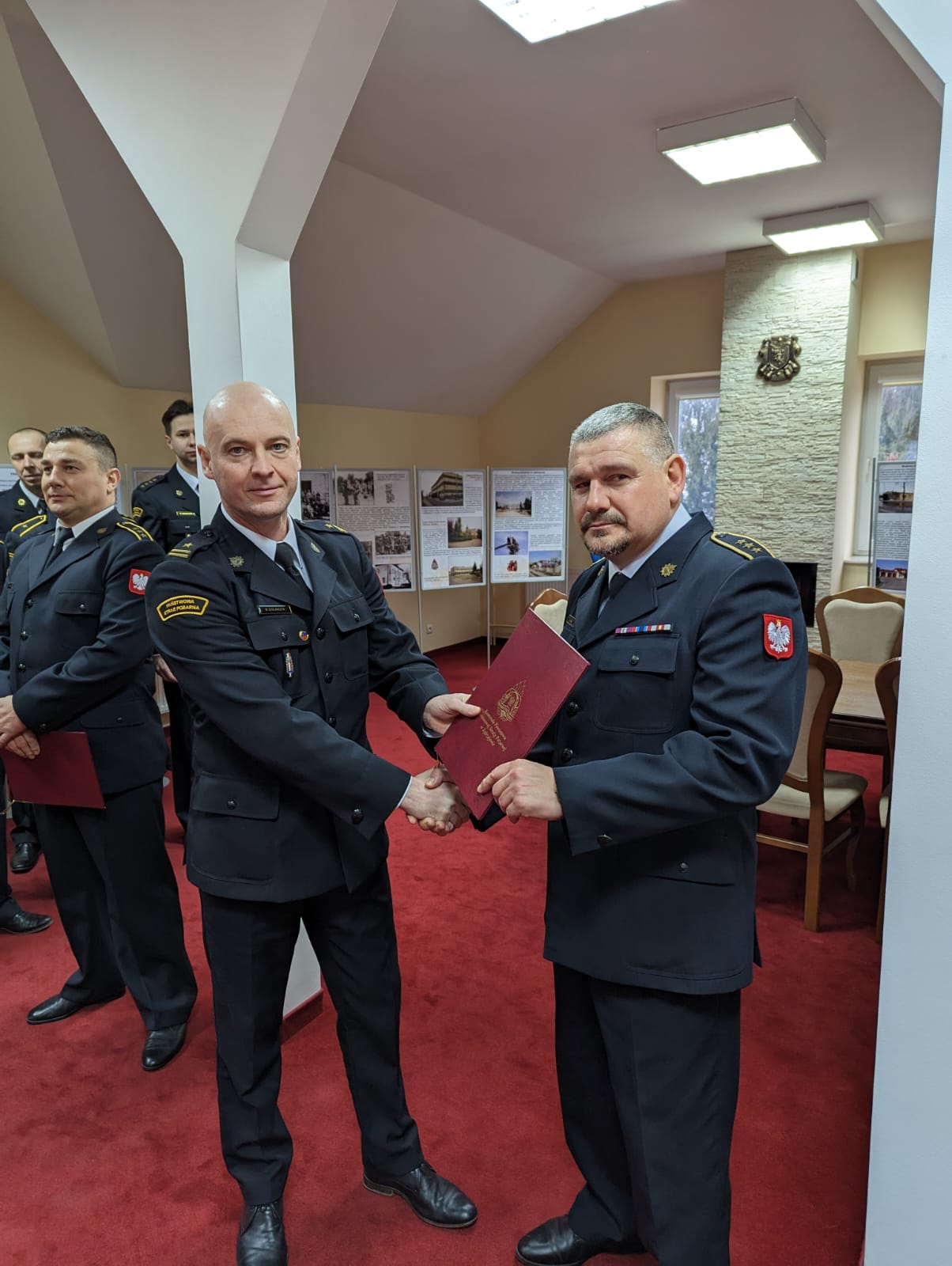 26 stycznia 2023 roku w siedzibie Komendy Powiatowej Państwowej Straży Pożarnej w Jędrzejowie odbyła się uroczysta zbiórka, podczas której ze służbą pożegnali się i przeszli na emeryturę asp. sztab. Grzegorz Gaim i asp. sztab. Artur Gaim - zastępcy dowódców zmian. Komendant Powiatowy PSP w Jędrzejowie mł. bryg. Mariusz Stolarczyk w obecności strażaków podziękował funkcjonariuszom za zaangażowanie podczas wieloletniej służby oraz życzył dużo zdrowia i wszelkiej pomyślności w życiu osobistym i rodzinnym wręczając pamiątkowy list gratulacyjny.