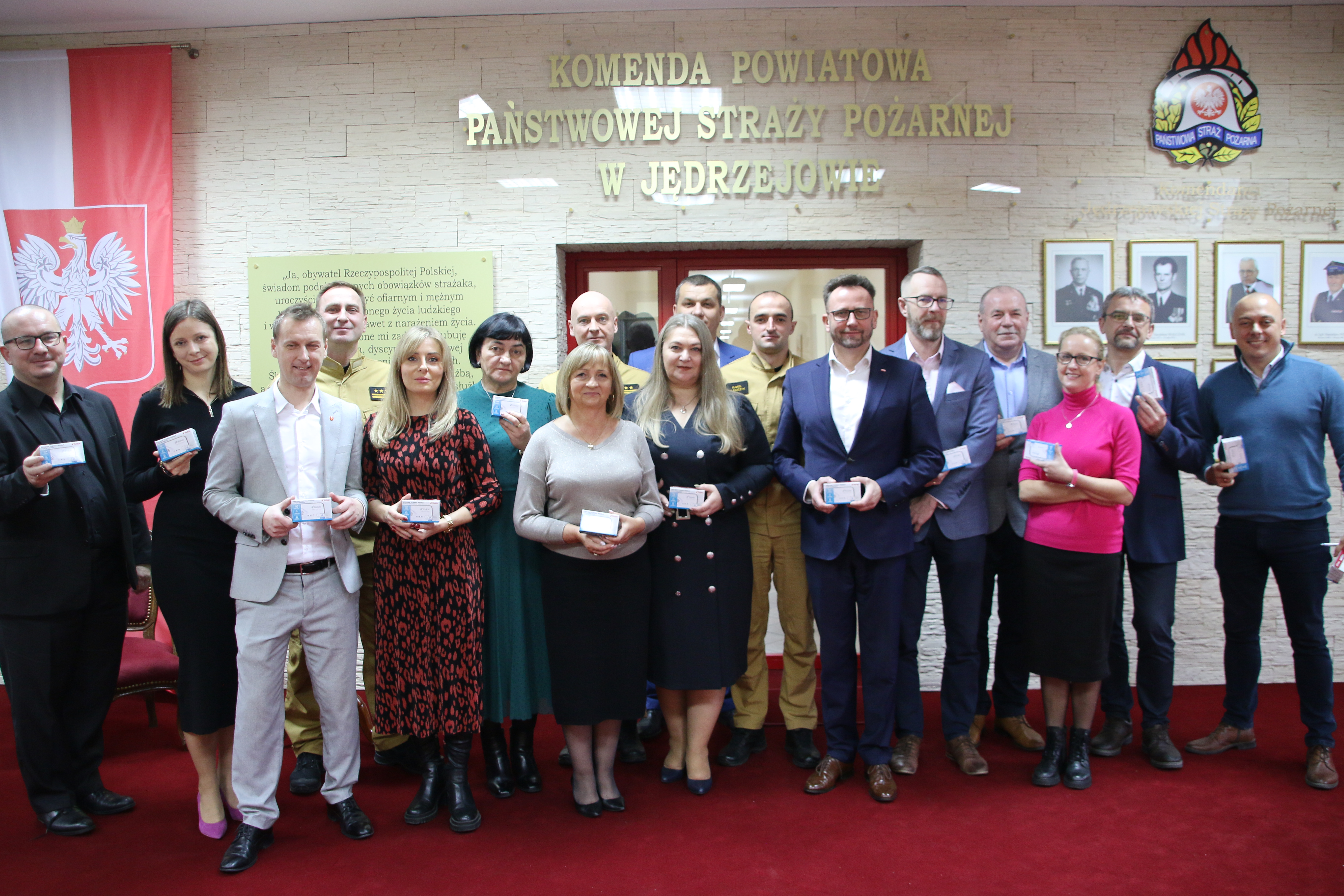 20 listopada 2024 roku w siedzibie Komendy Powiatowej Państwowej Straży Pożarnej w Jędrzejowie odbyło się wyjątkowe wydarzenie – uroczyste przekazanie czujek tlenku węgla, które trafią do placówek oświatowych na terenie całego powiatu jędrzejowskiego.