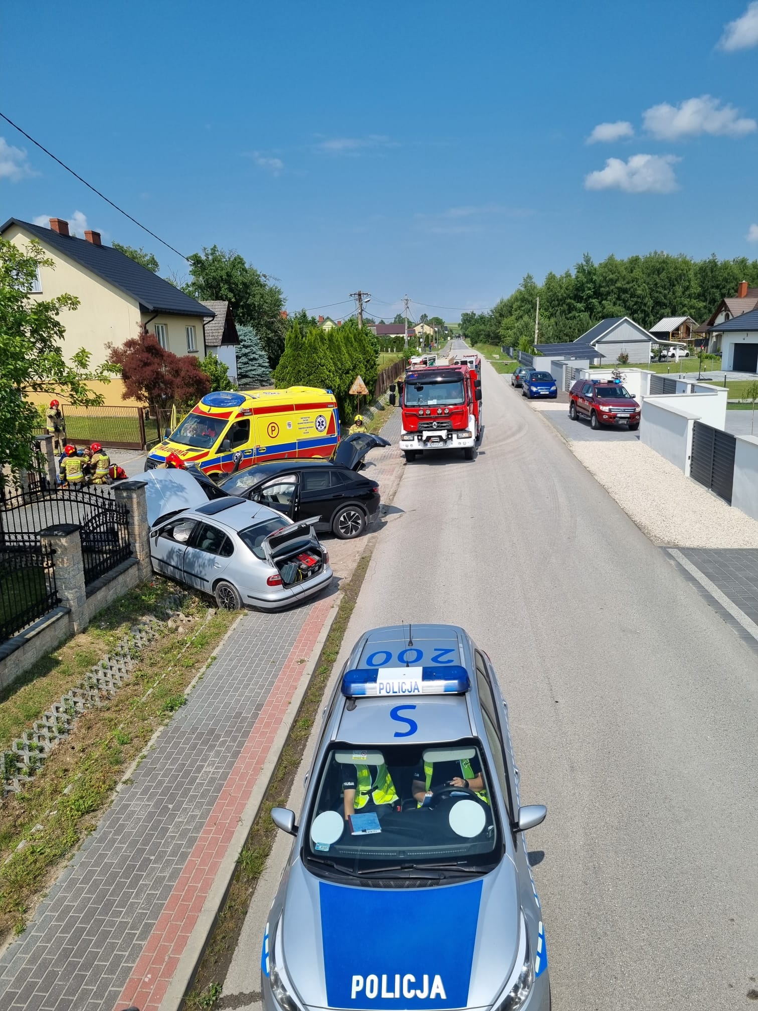 15 czerwca 2023 r. przed godziną 15:00 do Stanowiska Kierowania Komendanta Powiatowego Państwowej Straży Pożarnej w Jędrzejowie wpłynęło zgłoszenie o zderzeniu dwóch samochodów w miejscowości Potok Wielki. Po dojeździe na miejsce zdarzenia pierwszych zastępów straży pożarnej stwierdzono dwa rozbite pojazdy osobowe (Seat oraz Volkswagen o napędzie elektrycznym), którymi łącznie podróżowały 4 osoby, w tym dwójka dzieci. Wszyscy uczestnicy zdarzenia opuścili pojazdy o własnych siłach i znajdowali się pod opieką będącego już na miejscu zespołu ratownictwa medycznego.