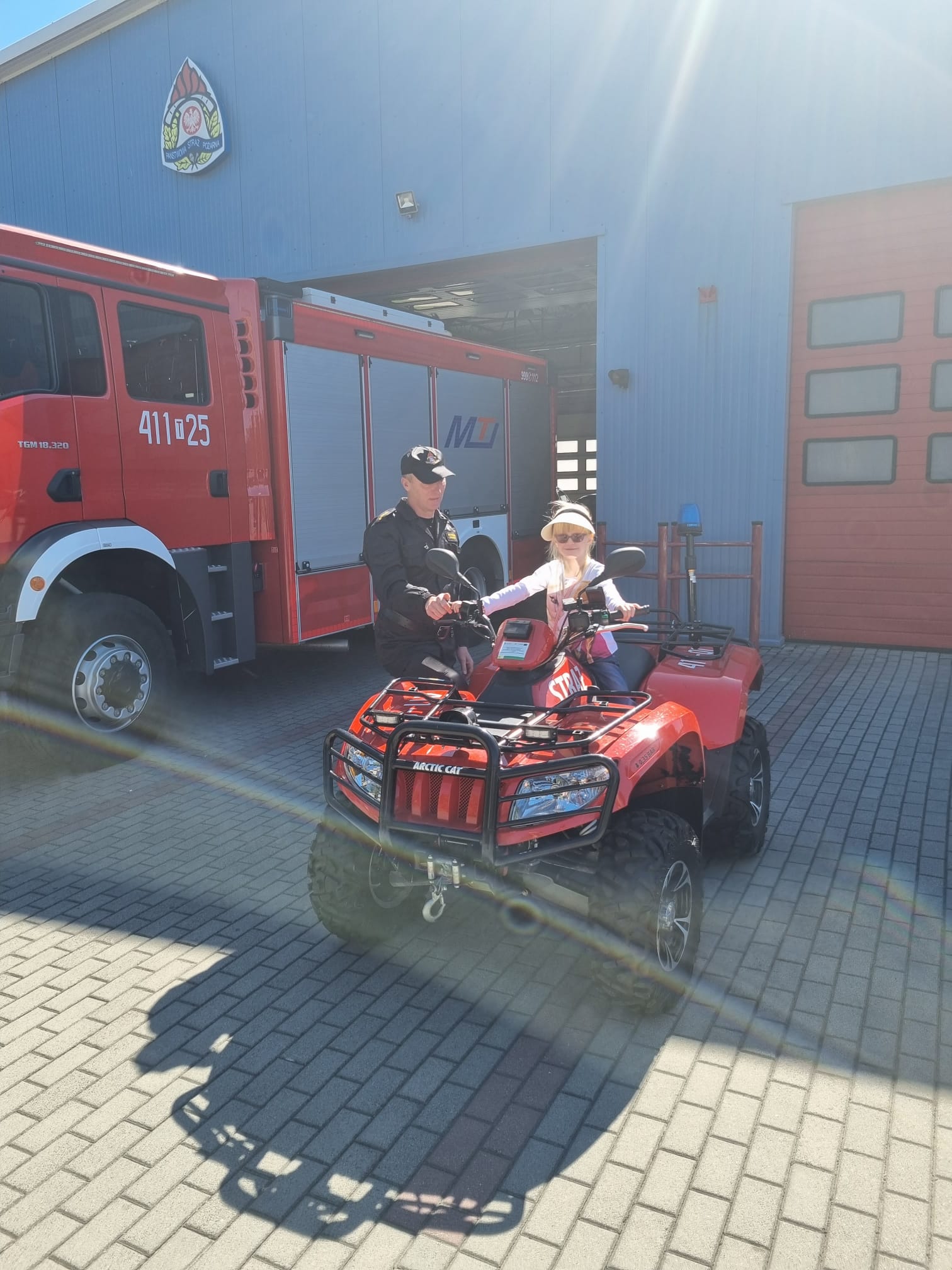 Podczas wizyty w straży Julia wraz z rodziną i pracownikami Polskiego Związku Niewidomych mogła zapoznać się ze sprzętem używanym przez strażaków podczas różnego rodzaju akcji ratowniczych, wsiąść do samochodu pożarniczego oraz przymierzyć hełm i posłuchać o trudach związanych z pracą strażaka.