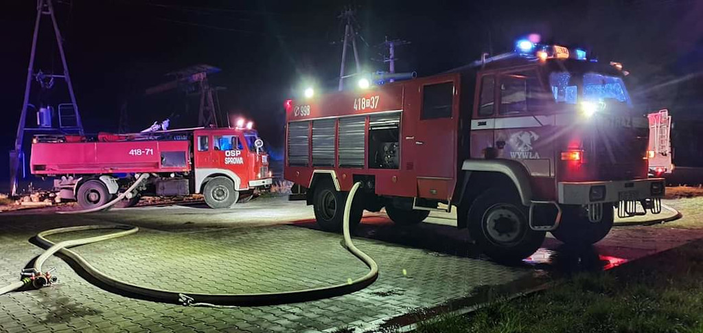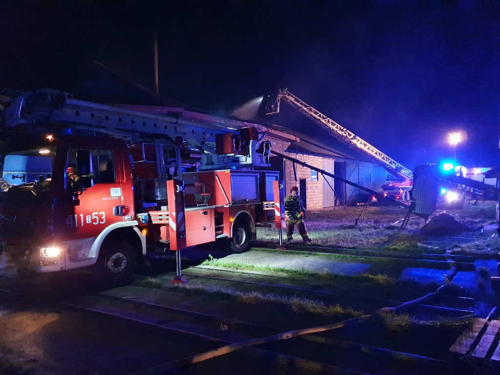 Wysokie płomienie nad tartakiem w Raszkowie
