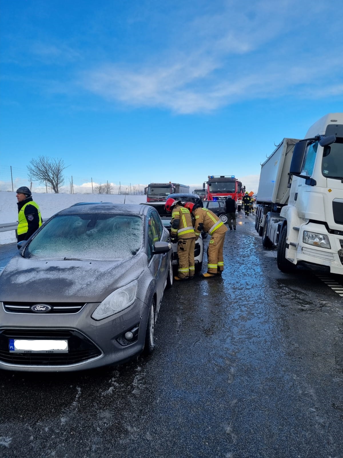 Zderzenie siedmiu pojazdów na drodze ekspresowej