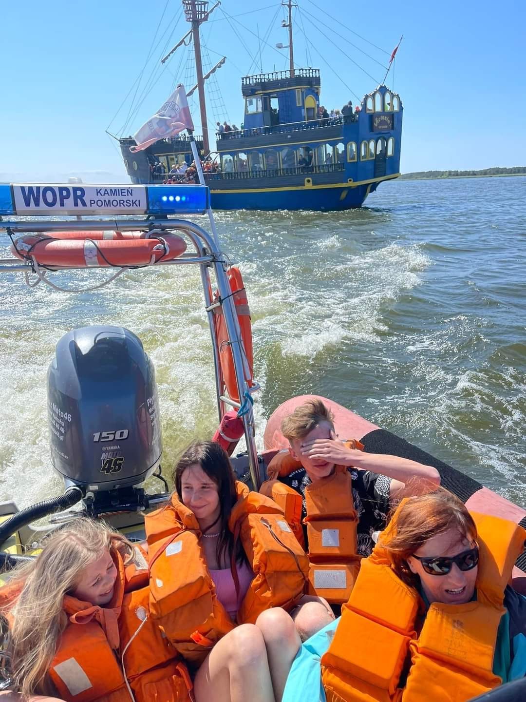05.06.2023 roku tuż po godzinie 15- tej do Stanowiska Kierowania Komendanta Powiatowego PSP w Kamieniu Pomorskim wpłynęła informacja od operatora 112, że na Zatoce Wrzosowskiej na mieliźnie osiadł statek wycieczkowy, który prawdopodobnie się przechyla, konieczna jest pomoc. Według zgłaszającego na pokładzie znajduje się ok 100 pasażerów oraz 4 osoby z obsługi statku. Dyżurny SKKP niezwłoczne do działań ratowniczych zadysponował 3 zastępy z JRG PSP Kamień Pomorski wraz z łodzią ratowniczą oraz łódź ratowniczą(RIB) z OSP KSRG Dziwnów. O zdarzeniu poinformował WOPR Kamień Pomorski oraz Morską Służbę Poszukiwawczo-Ratowniczą(SAR) Dziwnów z poleceniem podjęcia działań ratowniczych z użyciem łodzi. Po dotarciu na miejsce zdarzenia łodzi ratowniczej PSP, na miejscu obecna była załoga SAR Dziwnów, która prowadziła wstępną ewakuację i zaopatrywała pasażerów w kamizelki ratunkowe wraz z załogą statku. Przystąpiono do ewakuacji pasażerów na pokłady łodzi ratowniczych, po czym przewożono ich do Mariny w Dziwnowie, gdzie pasażerów przejmował SAR oraz Straż Miejska Dziwnów. Łącznie ewakuowano 103 osoby z czego 42 zostały ewakuowane przez strażaków PSP i OSP .