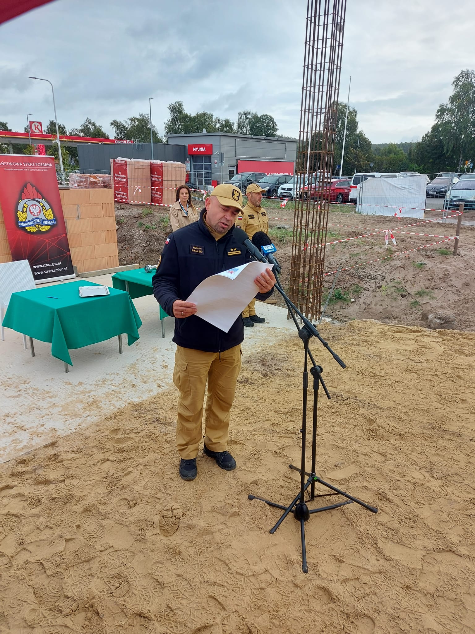 Po założeniu meldunku przez dowódcę uroczystości Zastępcy Komendanta Głównego Państwowej Straży Pożarnej nastąpiło odczytanie aktu erekcyjnego przez Komendanta Powiatowego Państwowej Straży Pożarnej w Kamieniu Pomorskim. Po odczytaniu akt został podpisany oraz poświęcony przez Zachodniopomorskiego Kapelana Państwowej Straży Pożarnej bryg. Ryszarda Szczygła. Tuba z aktem oraz przedmiotami przeznaczonymi dla przyszłych pokoleń została wmurowana w ścianę nowobudowanego obiektu. Po dokonaniu wmurowania aktu głos zabrał nadbryg. Krzysztof Hejduk Zastępca Komendanta Głównego Państwowej Straży Pożarnej.