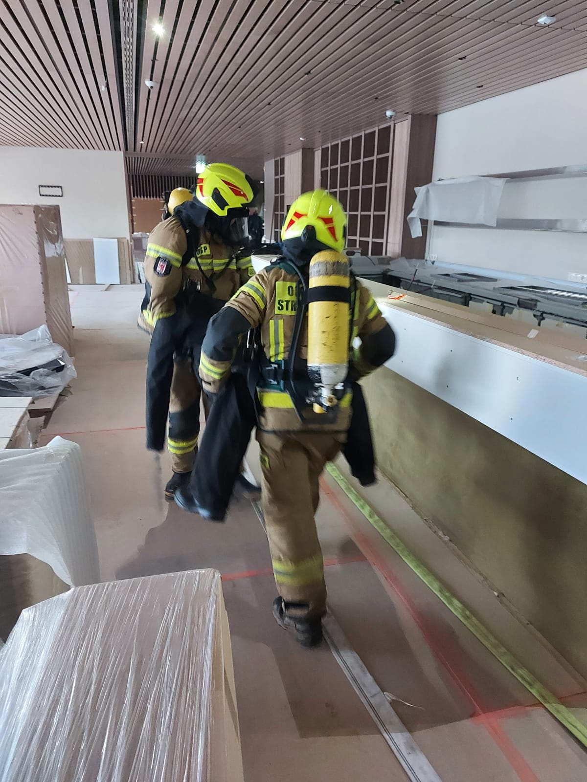 24.02.2024 roku strażacy z Państwowej Straży Pozarnej Międzyzdroje wraz ze strażakami ochotnikami z Kołczewa, Wolina oraz Ładzina brali udział w ćwiczeniach na nowo budowanym obiekcie ,jakim jest Centrum Konferencyjno-Szkoleniowe GLAR w Wisełce. Ćwiczenia polegały, na zapoznaniu się ze specyfikacją nowo budowanego obiektu, rozpoznaniem zagrożeń wynikających z funkcjonowania obiektu, rozpoznaniem wodnym na wypadek wystąpienia pożaru. Po zapoznaniu przeprowadzono symulowaną akcję gaśniczą w części gastronomicznej obiektu. Ćwiczenia i zapoznanie się z obiektem, pozwoli na przeprowadzenie szybkiej i sprawej akcji, na wypadek prawdziwego zagrożenia. opracowanie : st. kpt. Michał Wiaderski KP PSP Kamień Pomorski zdjęcia: mł.kpt. Marek Kruczek PSP Kamień Pomorski