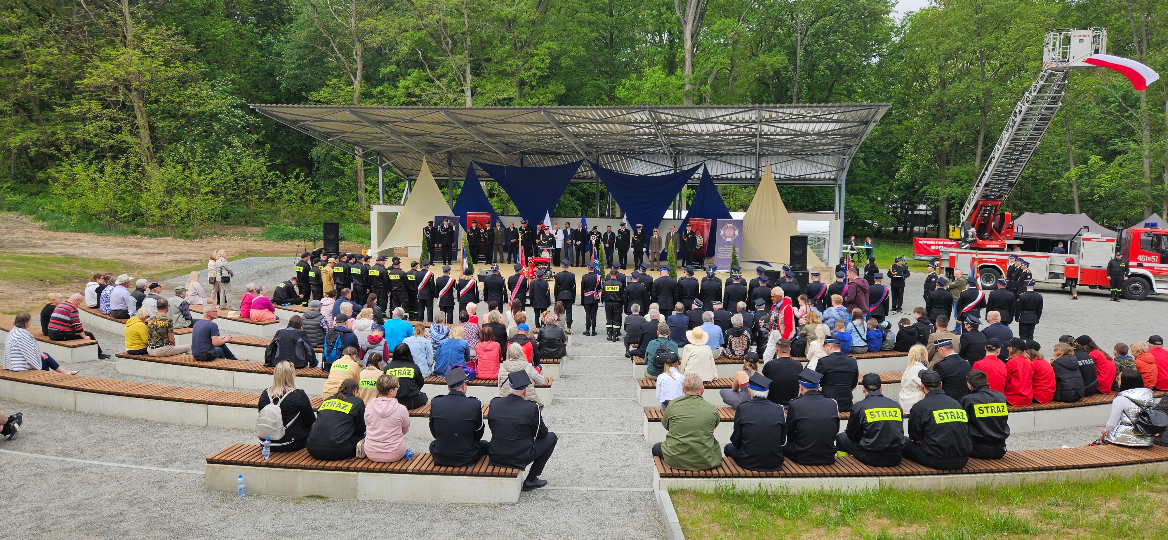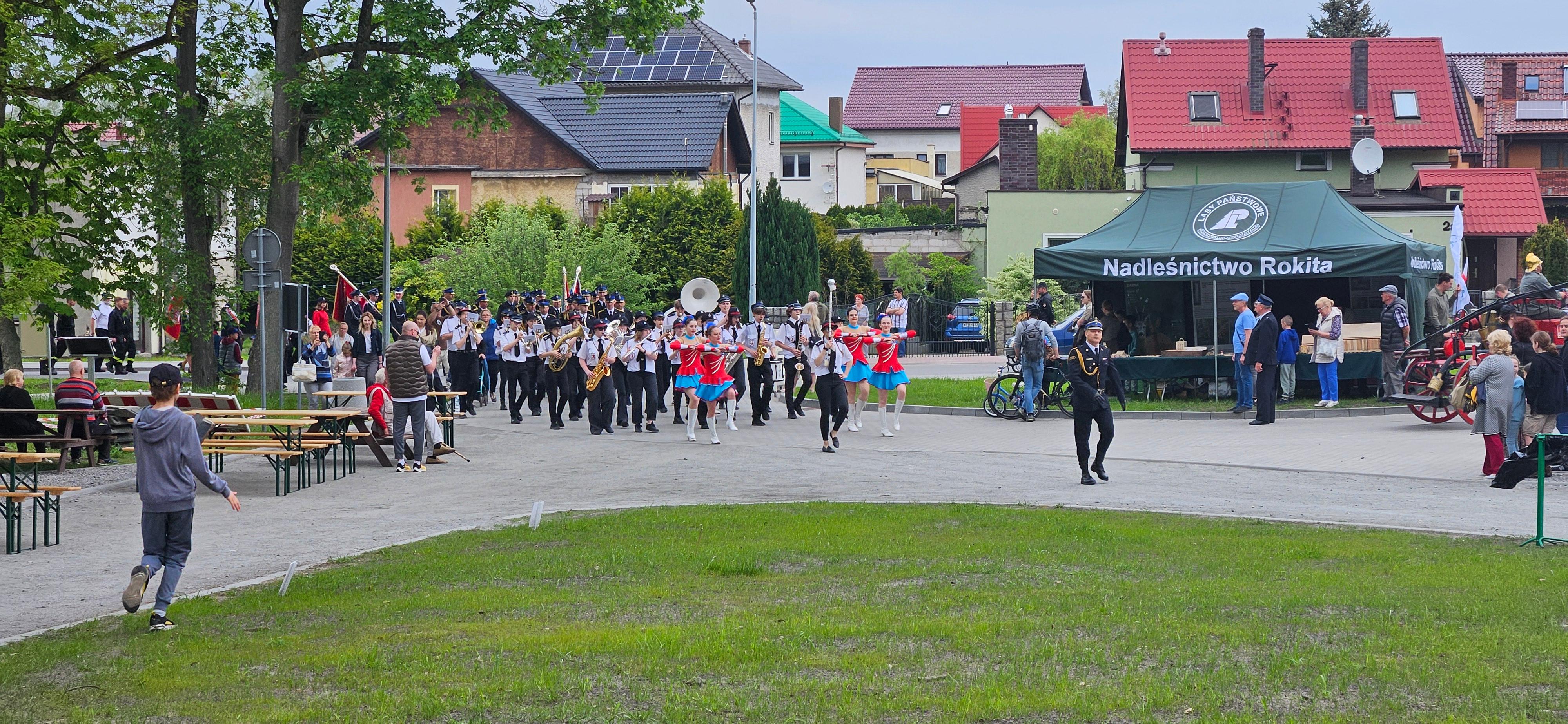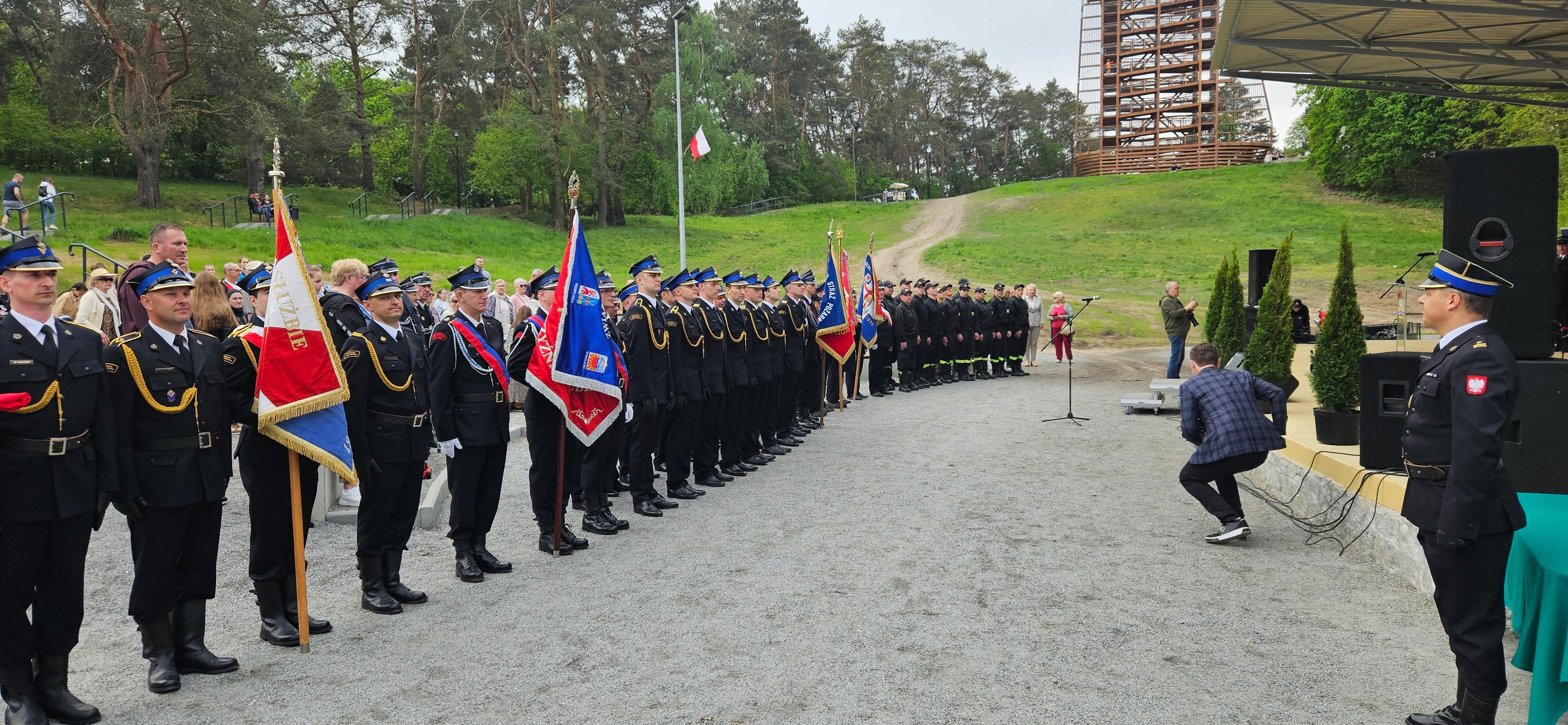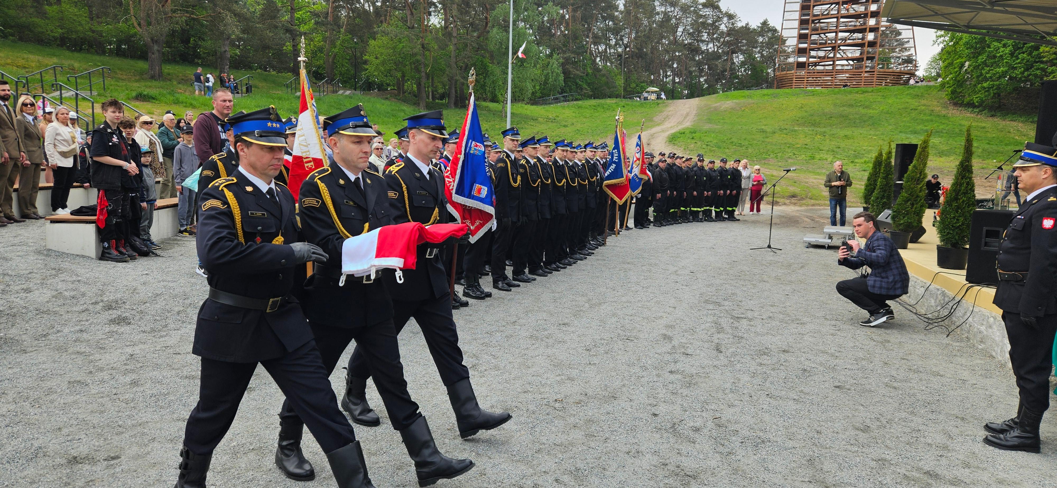 Po Mszy Św. nastąpił przemarsz w akompaniamencie młodzieżowej orkiestry dętej z Płot, spod Kolegiaty do parku miejskiego, pocztów sztandarowych, pododdziału strażaków PSP i OSP, władz samorządowych oraz przedstawicieli służb mundurowych, gdzie odbyła się druga część uroczystości. Druga część uroczystości rozpoczęła się od złożenia meldunku Zastępcy Zachodniopomorskiego Komendanta Wojewódzkiego Państwowej Straży Pożarnej w Szczecinie st. bryg. Krzysztofowi Makowskiemu. Następnie dokonano uroczystego podniesienia Flagi Państwowej na maszt , po czym odegrano hymn państwowy.