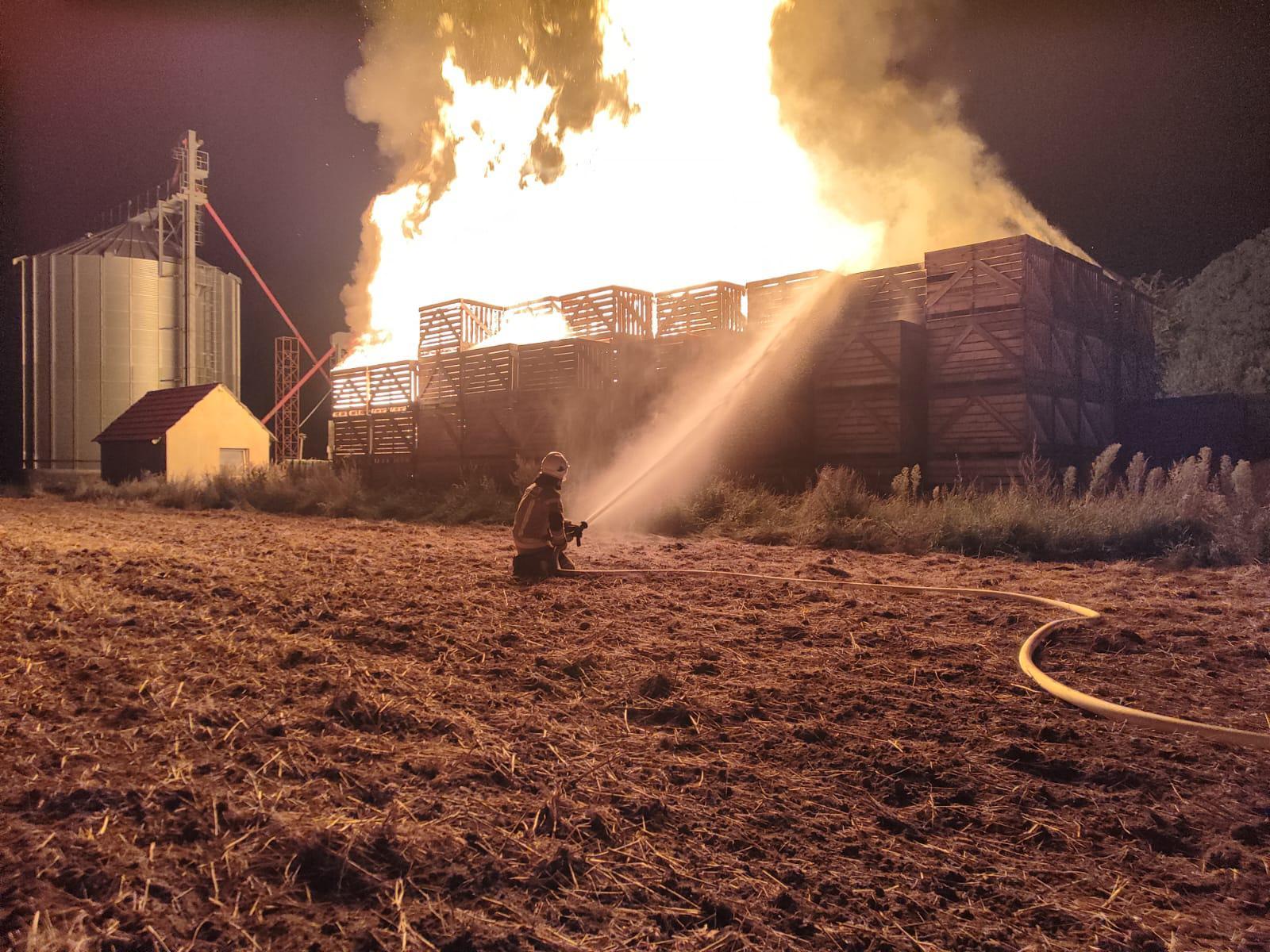 Pożar składowiska drewnianych skrzyń