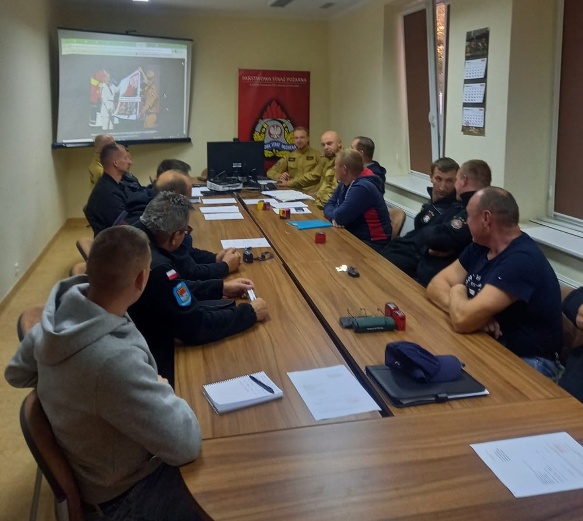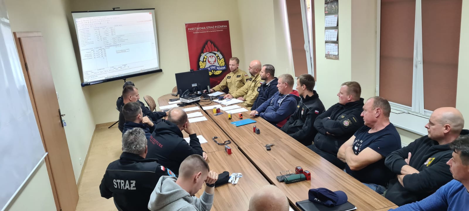 12 października 2023 r. w Komendzie Powiatowej Państwowej Straży Pożarnej w Kamieniu Pomorskim odbyło się spotkanie z udziałem prezesów OSP powiatu kamieńskiego. W spotkaniu udział wziął bryg. Roman Pikulski - Komendant Powiatowy Państwowej Straży Pożarnej w Kamieniu Pomorskim oraz mł. kpt. Marek Kruczek – Naczelnik wydziału ds. operacyjnych. Celem spotkania było omówienie wielu spraw bieżących między innymi: trwającej akcji „Bitwa o Remizy 2023”, organizacji szkolenia dowódców OSP, BHP podczas działań ratowniczych, inspekcji gotowości operacyjnej na terenie powiatu.
