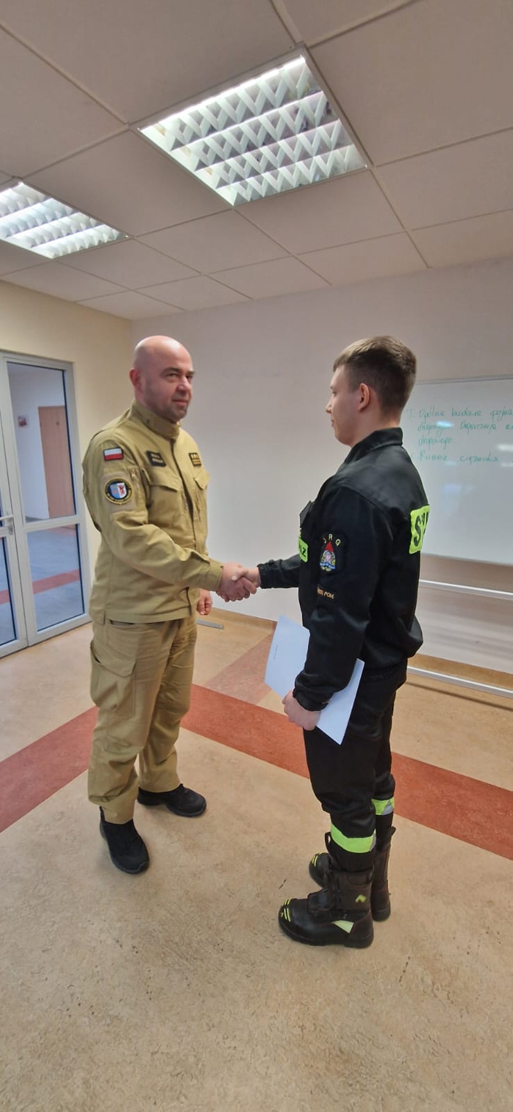Wyróżniony został str. Jakub Szkut, za uzyskanie celujących wyników w nauce, jaką przebył w Szkole Podoficerskiej PSP w Bydgoszczy, w trakcie kursu podstawowego w zawodzie strażaka.