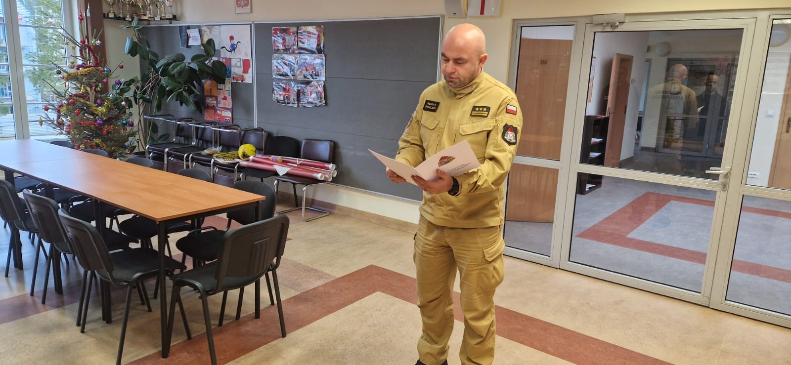 W dniu 10.01.2025 roku na świetlicy Jednostki Ratowniczo-Gaśniczej Komendy Powiatowej PSP w Kamieniu Pomorskim w obecności st. bryg. Romana Pikulskiego Komendanta Powiatowego PSP w Kamieniu Pomorskim, Dowództwa JRG oraz zmiany służbowej, odbyła się uroczysta zbiórka z okazji wręczenia wyróżnienia dla funkcjonariusza.