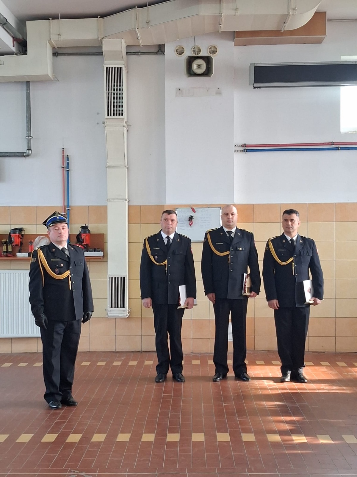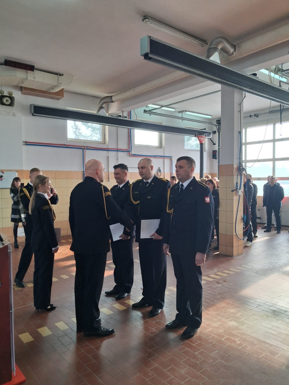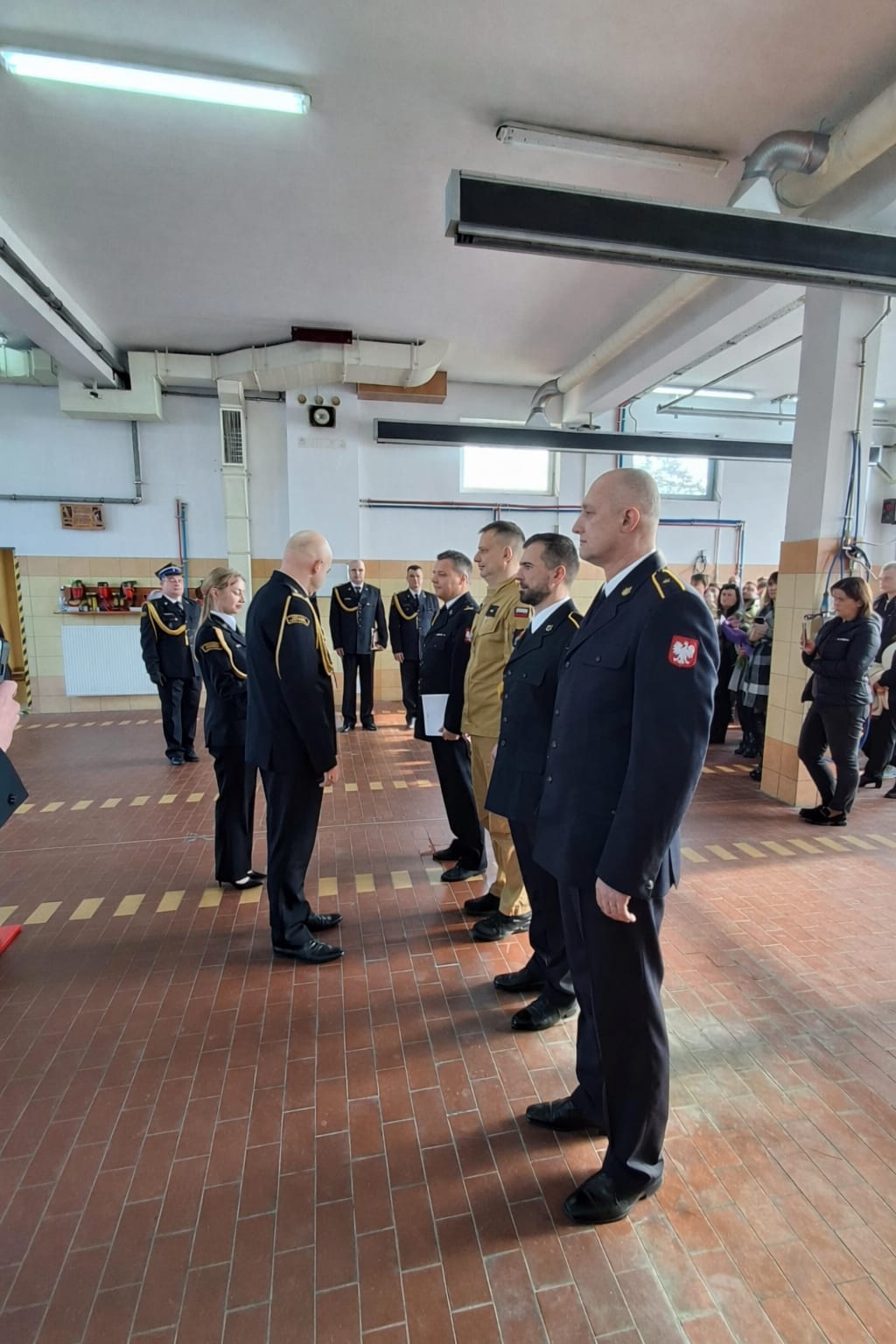 Kolejnym elementem uroczystości było wręczenie awansów na kolejne stanowiska służbowe. Komendant Powiatowy Państwowej Straży Pożarnej w Kamieniu Pomorskim st. bryg. Roman Pikulski awansował funkcjonariuszy na stanowiska: